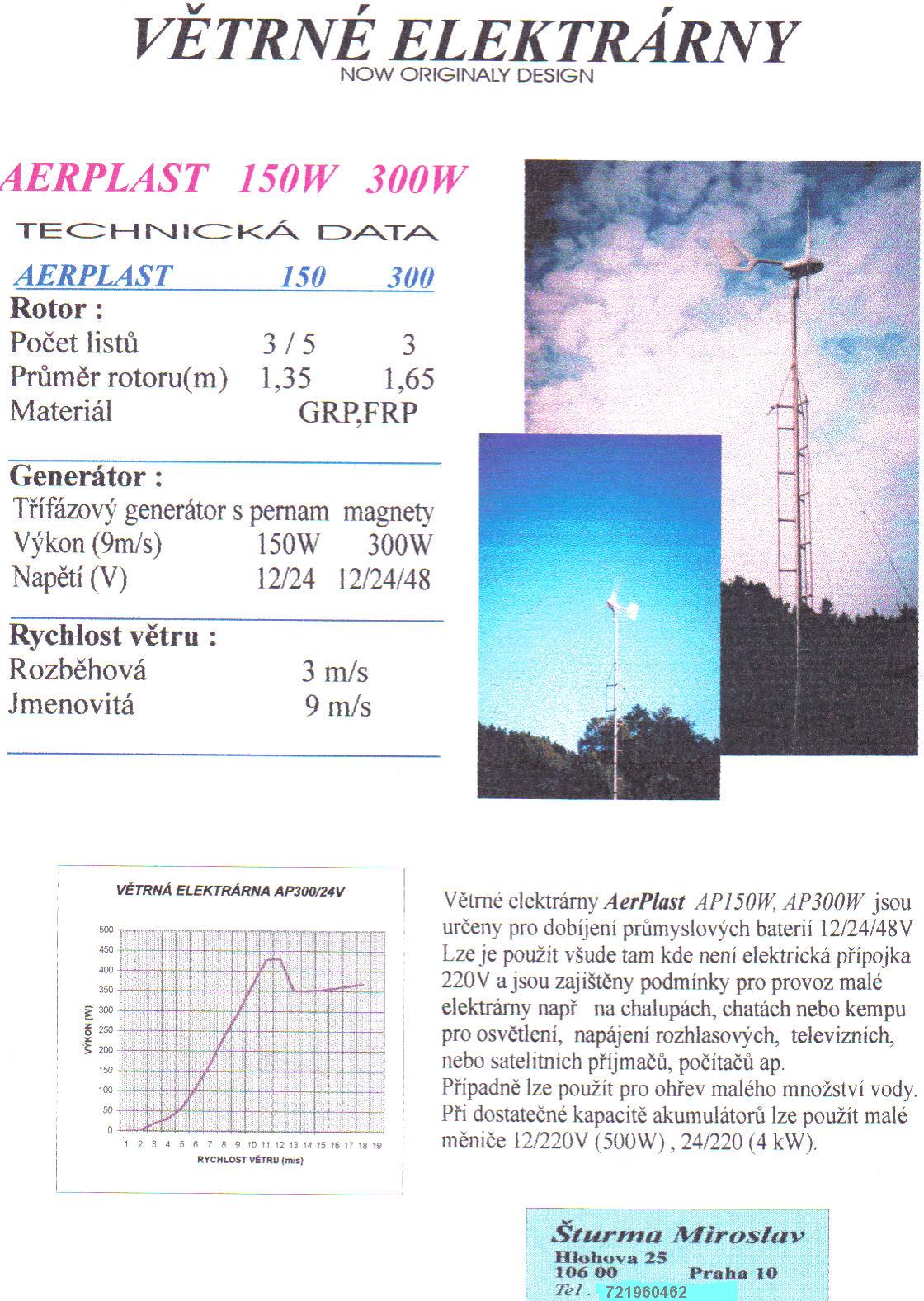 Re: prodam vetrnz mlyn 1m/5 listu cca 150W/12V