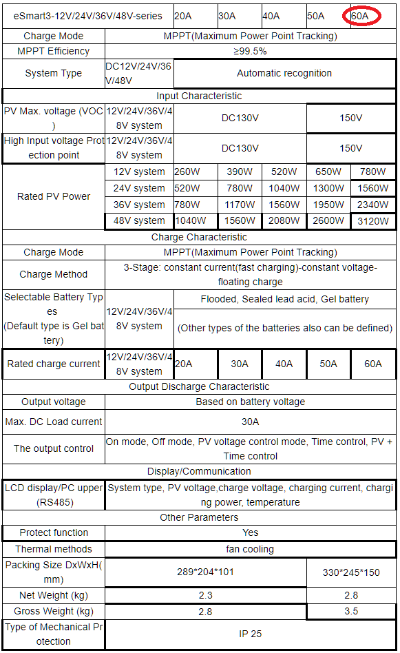 eSMART3 LCD 60A smart MPPT solar charge controller