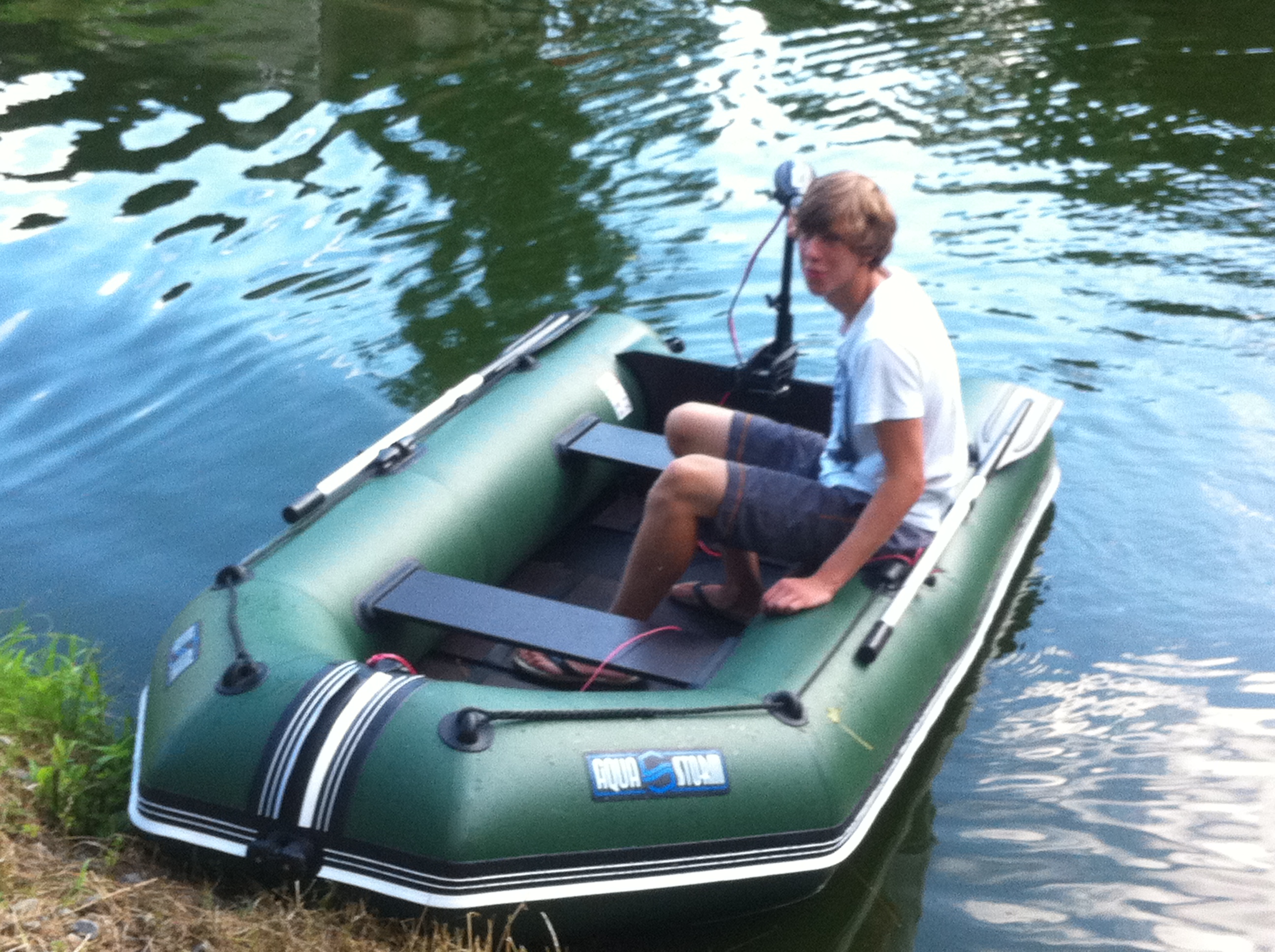 Synek si pořídil na ryby nafukovací člun cca 3 metry. Ukrajinské výroby za 11kKč.