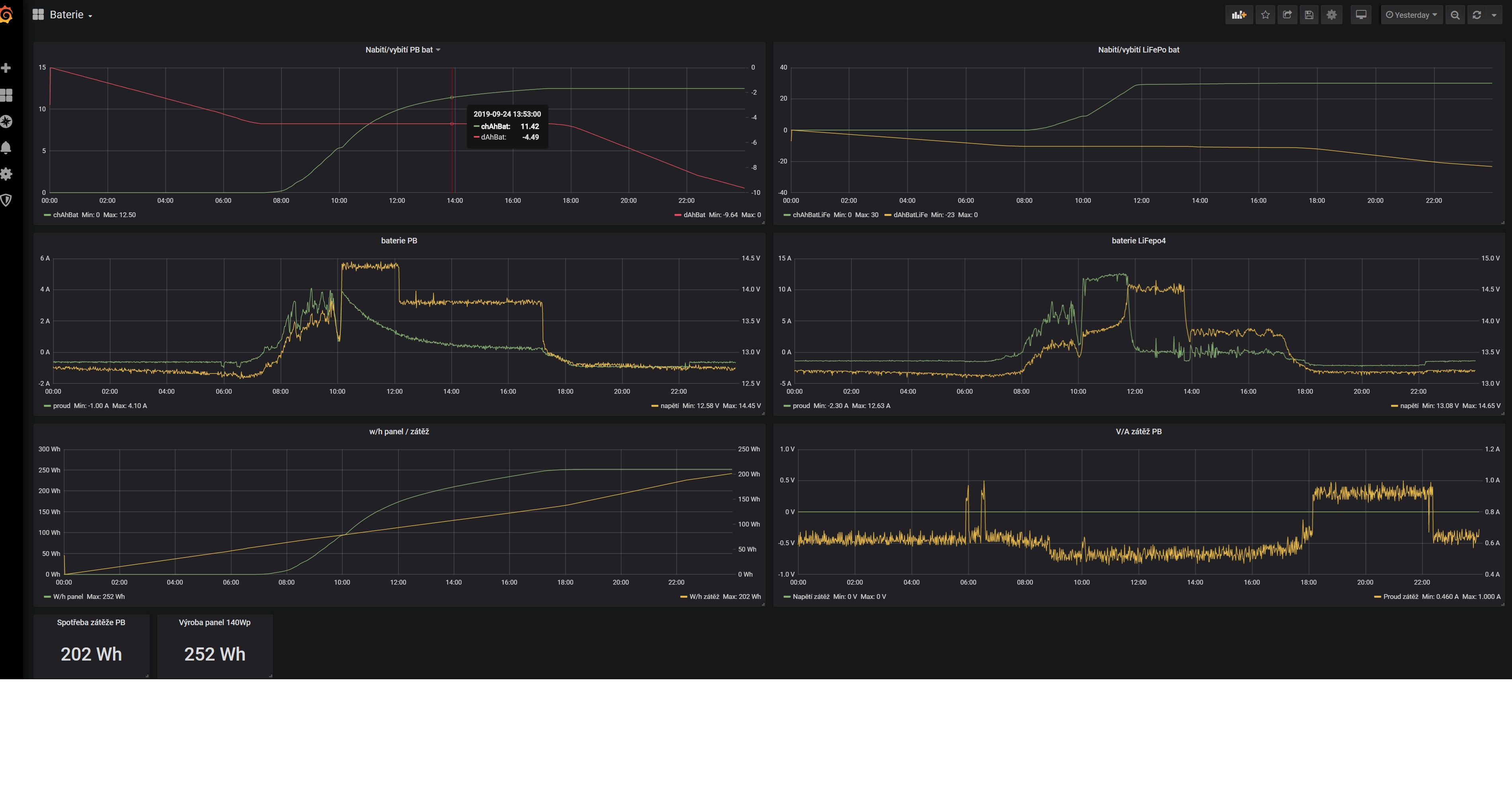 ostrov skoro 8kWp neustále ve stádiu zrodu: smartshunt(ex WBJR), MPPT150/45, MPPT 250/100(ex midnitesolar 150 clasic lite), 16S a různě P cca 340Ah Winston, MP II 5000,( ex Powerjack 8kW, ex samodomo cca 4kW). 48V DC rozvody a spotřebiče.
