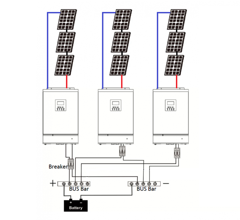měniče InfiniSolar sám používám, ale řešení pomocí 3x InfiniSolar 3K Plus pro Tvůj případ opravdu není dobrý nápad: