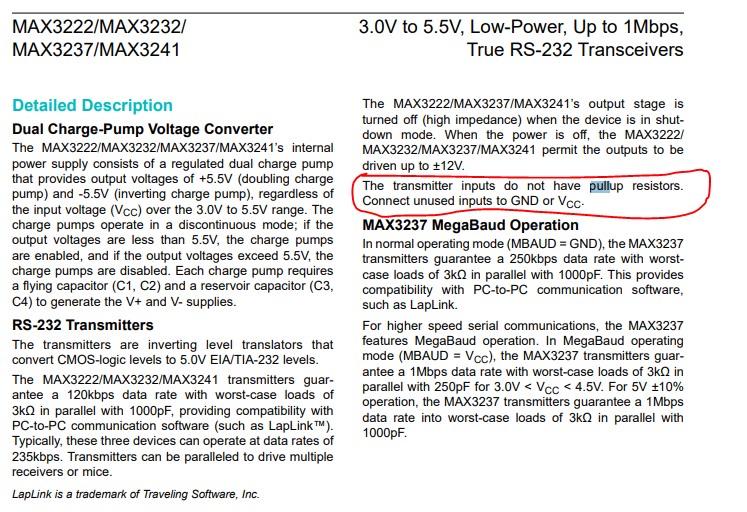 Podobny problem bol as MAX232 a vraj pomohlo toto: