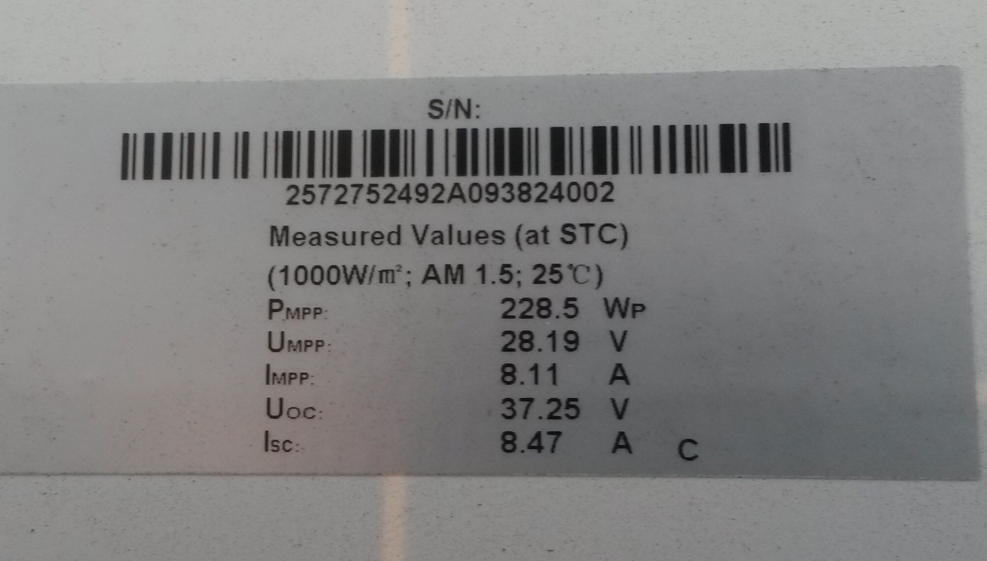 Nebude tomu náhodou odpovídat zde inzerovaný panel Jinko? 225 Wp, 29,5 V, 7,63 A....