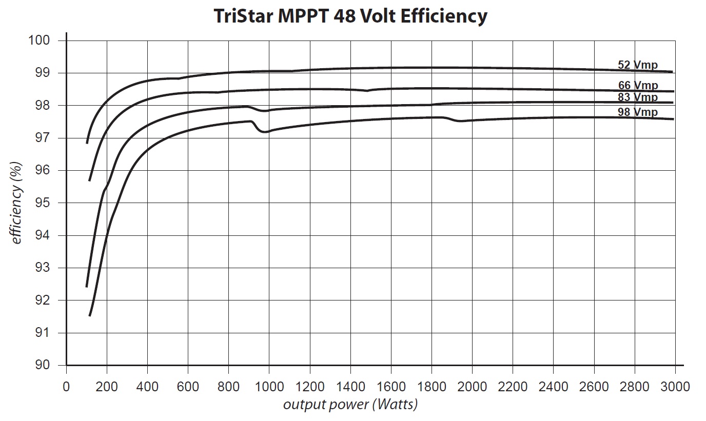 U slušného MPPT regulátoru bude jistě účinnost přes 90% ale teď jde o to o kolik. Možná máš nějaký zázračný regulátor ale u mého Tristaru pořád platí fyzikální principy a to tak, že čím více se musí hladina napětí změnit, tím vyšší jsou ztráty. A pokud ještě zvládám číst z grafů, tak u tohoto legendárního MPPT regulátoru klesnou ztráty konverzí při poklesu napětí stringu z 98 V na 52 V na méně než polovinu v celém rozsahu regulace. Pokud máš nějaké jiné zdroje informací, případně nějaký jiný zázračný MPPT regulátor, kde neplatí fyzika a je to naopak, tak to, prosím, zveřejni, ať neumřu v omylu.kodl69 píše:to Kybos: tvoje pravda není univerzální, ale platí pro přímý spojení panel - spotřebič, pokud je v cestě DC-DC konvertor (mppt regulátor) tak už to není pravda, pklidně při dvojnásobným napětí panelů oproti baterce může být účinnost přes 90% navíc podpořená menším úbytkem na vedení při vyšším napětí.