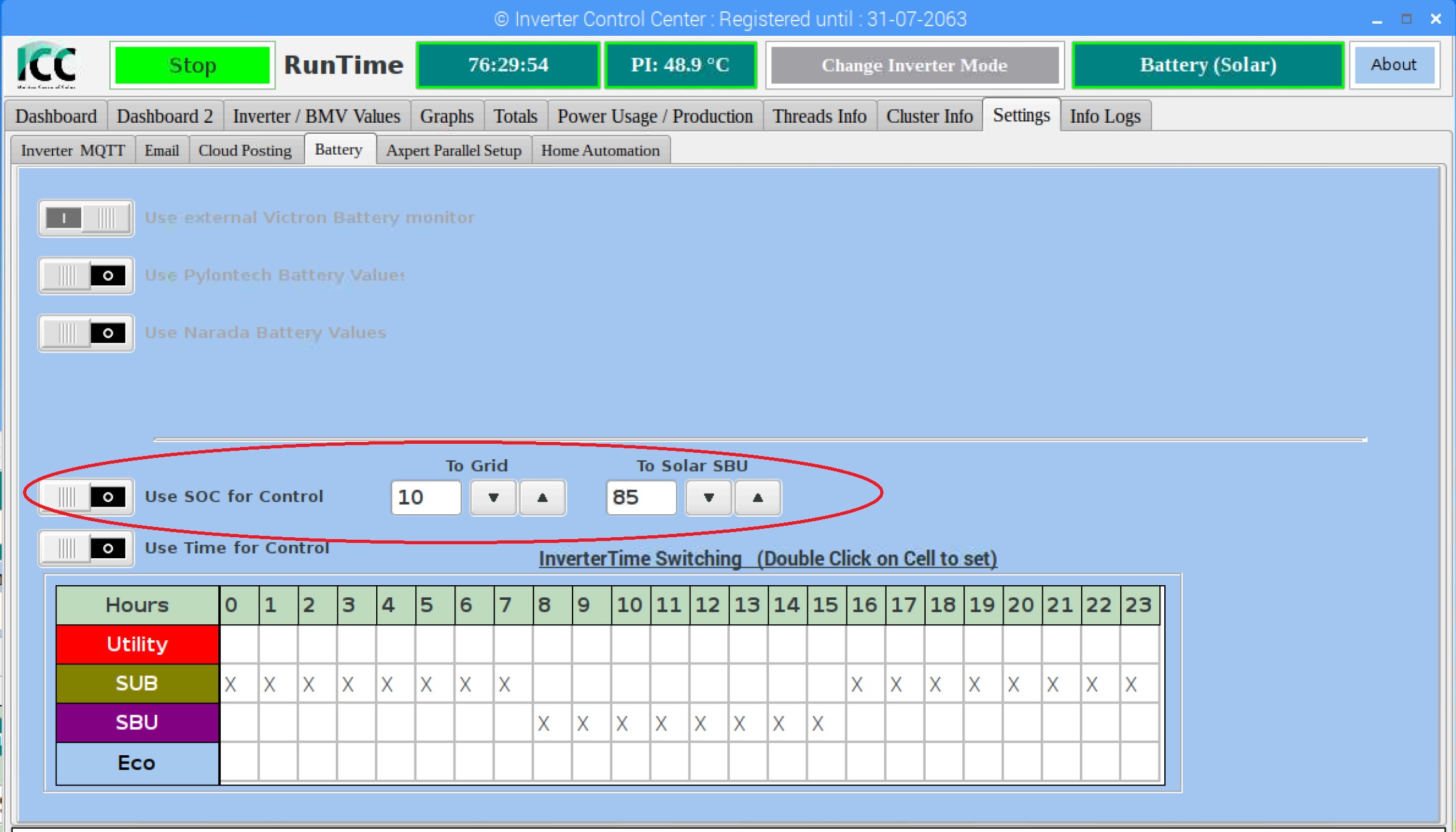 Budem to teda musiet nastavit podla Ubat. Na riesenie s ICC si netrufam. Skusim odmerat napatie pocas vybijania a v polovici casu tak zistit napatie pre cca polovicu kapacity. Mam 300Ah (3kW panelov), premyslam na nastaveni teda na cca 50% soc