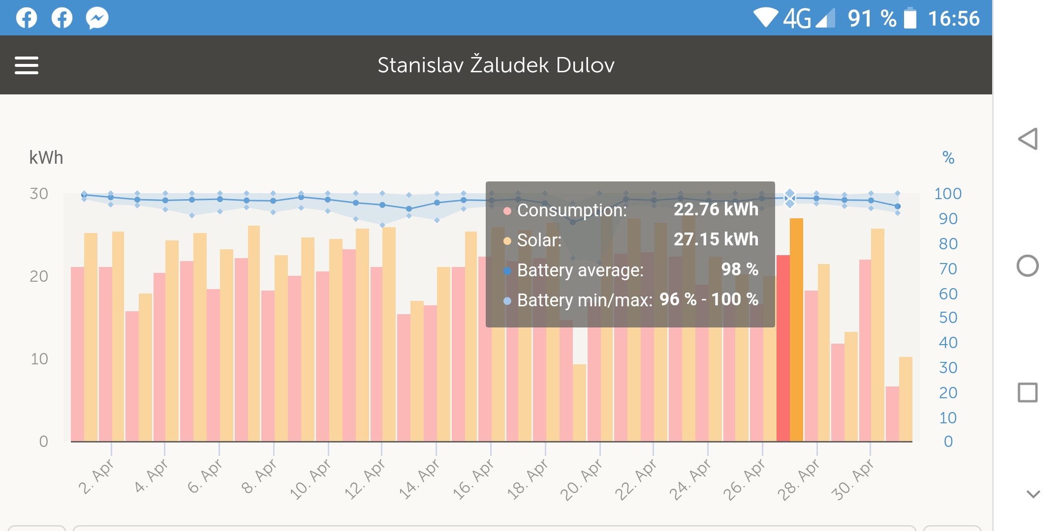 Zdravím vá všetkých. Je to trištvrte roka, čo som sa dal na FVE, ale len preto, že som chcel vyriešiť zakrytie terasy a vyriešil som to 45ks Amorfy GS 55W. Po takom čase mám teda odsúšané, ako šlapú a nieje to žiaden výkon na zahodenie. Systém som na jeseň doplnil o 9 kas polykryštál 285W. Menič mám EASYsolar 48v5kW. Batéria je zo staršieho vzv 775Ah. Regulátor je origo Victron 150V 100A + 150V 60A. napojené všetko do easysolaru. V dnešných dňoch je moja dená výroba a samozrejme aj spotreba do 30Kwh. Mám spravený jednoduchý kaskádový Kyosov vyťažovať na absorpciu a float. Na Obsorpciu mám 3x650W špirálu (2kW) a na float mám 3x1000W špirálu(3kw) plus sledovač napätia na bolér, 700W špirála. Všetko som sa snažil tak jednoducho do jednej peknej krabičky. Systém teraz zaťažujem aj TČ bazénovým, spotreba 2,6kW permanentne. Je to super, ťahám celú chalupku a vyzerá to nádejne.