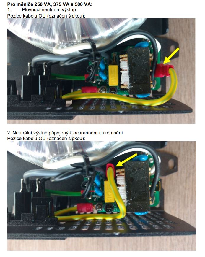 U těchto měničů zemnicí kabel od kostry lze připojit buď k FJ1 (plovoucí neutrální výstup) nebo k