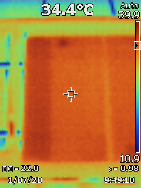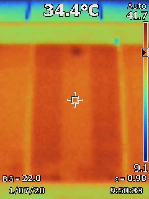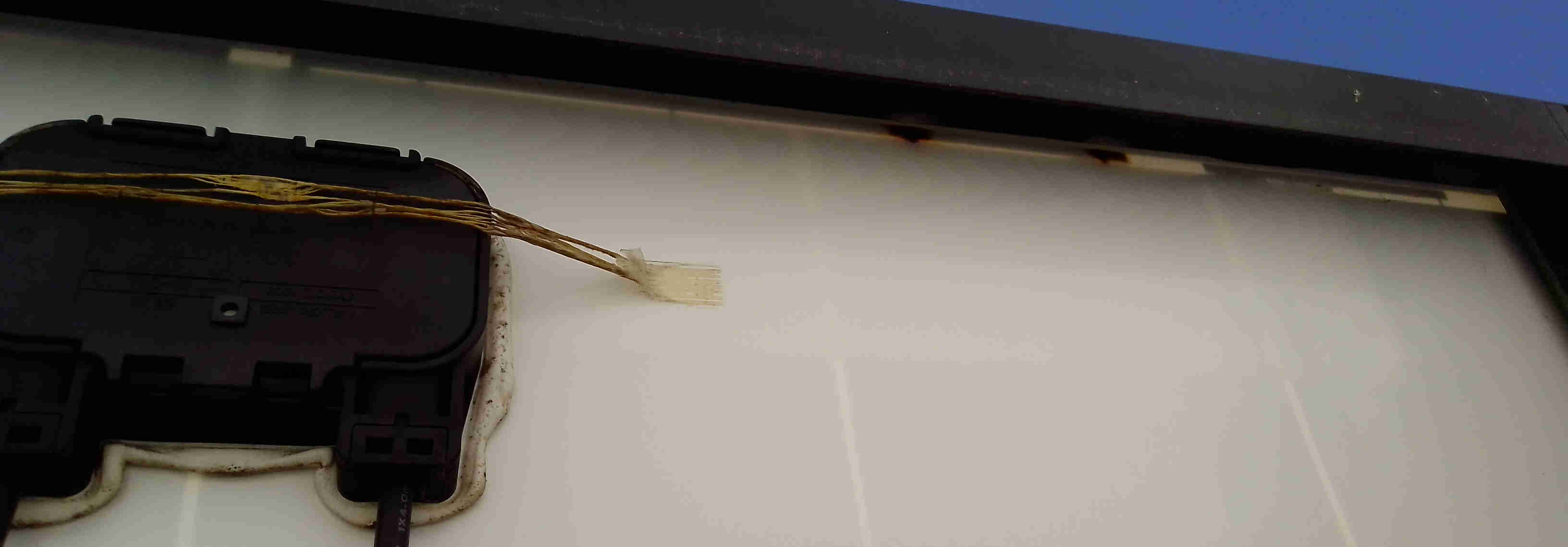 Ze 75 panelů měl jeden vypálený připojovaní box a asi 5-10 kusů vadu v zapájení horního busbaru. Vše na stejném místě, zřejmě robot špatně pájel. Jeden panel se v tom místě tak přehřál, že prasklo sklo. Je to škoda takové chyby při pájení, jinak ty panely vypadali jako nové.