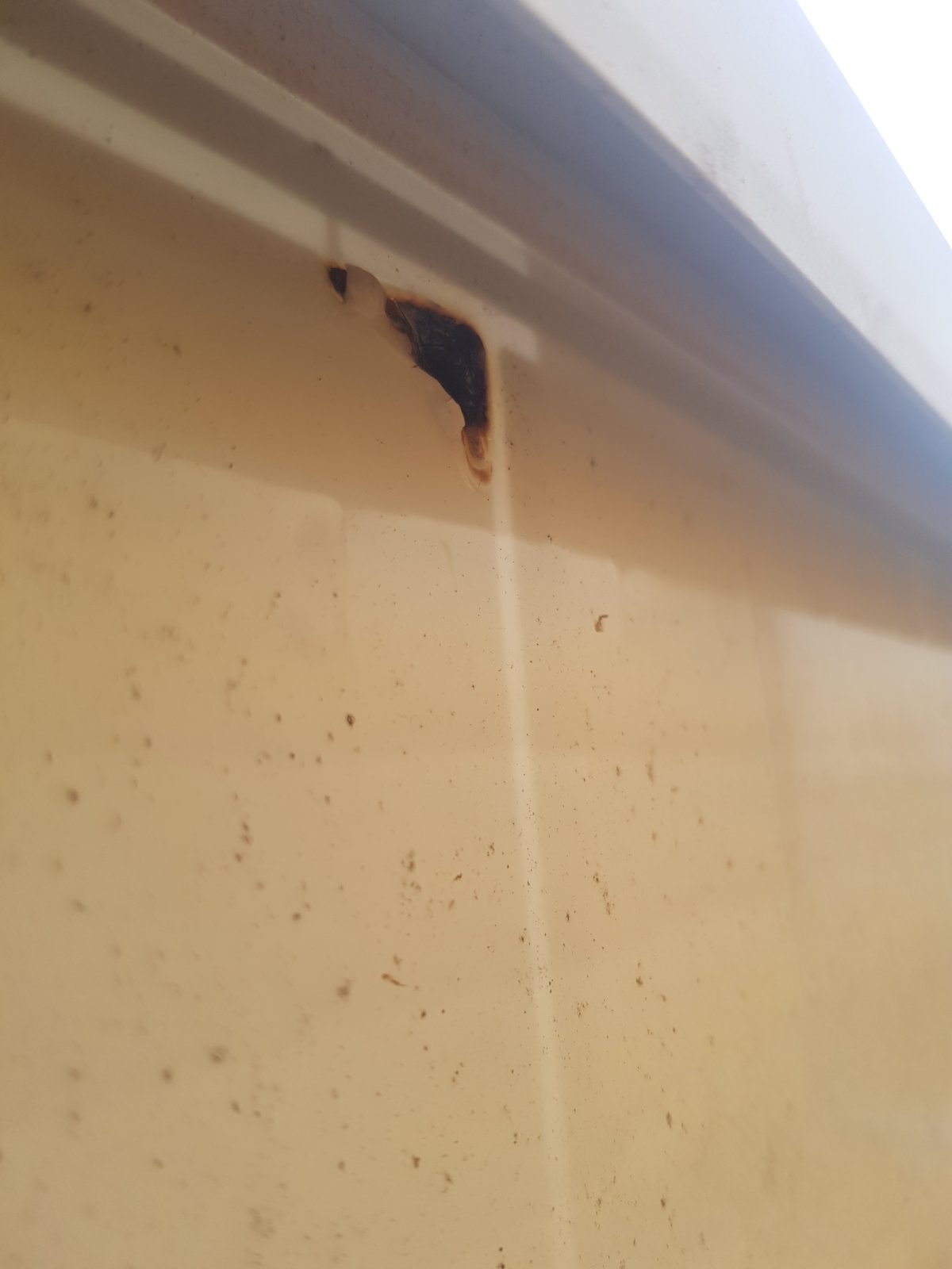 Na detailnich fotkach jiz ten zlom neni videt, asi to bylo uhlem foceni. Jo priklanel bych se k tomu, ze se to skvarilo delsi dobu. Chodi ti pres panely stiny???