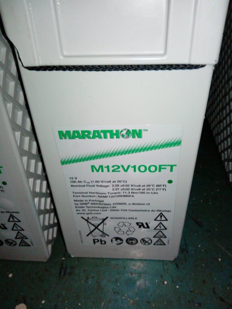 Nabízíme staniční bezúdržbové baterie Marathon M12V100FT s napětím 12V a kapacitou 100Ah, vhodné pro UPS, karavany nebo lodě. K dispozici jsou jak použité baterie zrušené serverovny s téměř plnou kapacitou, tak i zcela nové kusy z roku 2019. Baterie mají dlouhou životnost přes 12 let a certifikaci EUROBAT, což zaručuje spolehlivost a kvalitu. Ideální volba pro vysokokapacitní uložiště energie s možností osobního odběru v okolí Pardubic.