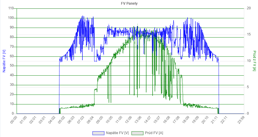 A priebeh ked bolo mozne odoboberat vsetok dostupny vykon panelov cely den.