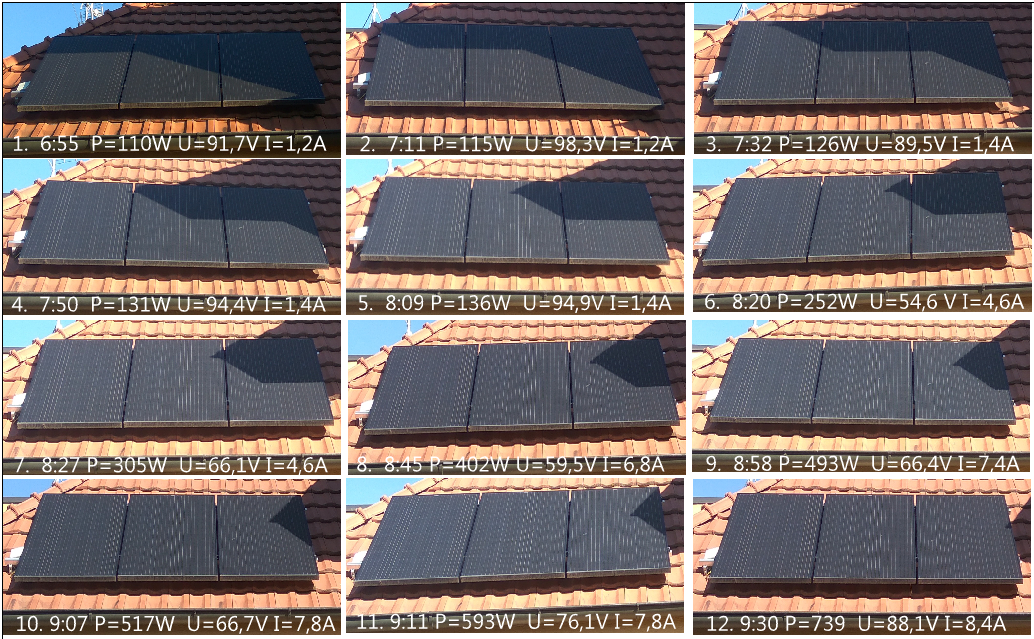 Dajte bacha ako mate orientovane panely, ako mate tiene, namontovat ich na vysku alebo na sirku nie je to iste ani zdaleka. Dajte bacha ake mate panely (stara generacia 3bb, alebo nove 5bb/9bb), pozor na stringy zvlast na high-voltage cize velke seriove, JEDEN JEDINY CIASTOCNE CHMATNUTY PANEL VAM TO VYRADI Z CINNOSTI NAHULVATA.