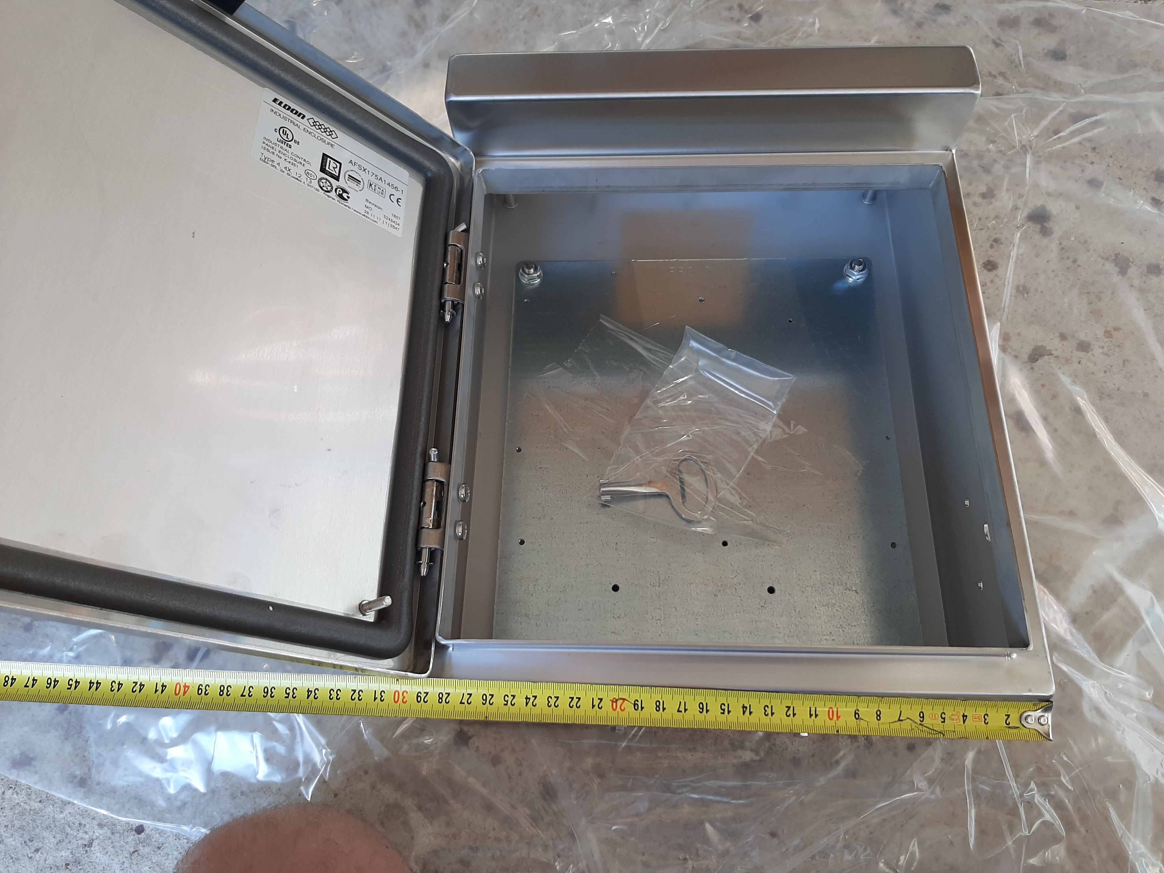 Prodam nepoužite celonerezove rozvaděče. Tloušťka plechu 2 mm. Rozmery jsou na fotkach, maji velke IP. Současti je zamek s klicem a vnitřni pozinkovana instalacni deska. Vhodne napřiklad k bezpecnemu ulozeni Lion članku. Jednine co je nutne je zaslepit otvor v horni časti rozvadeče. Z vnitřni strany otvoru jsou navařené zavity, tak neni problem udělat nejakou zaslepku. Prodam temeř za cenu šrotu, tj 250 Kč za kus. Mam ji vice jak 30 kusu. Hmotnost jednoho je 7,5kg.