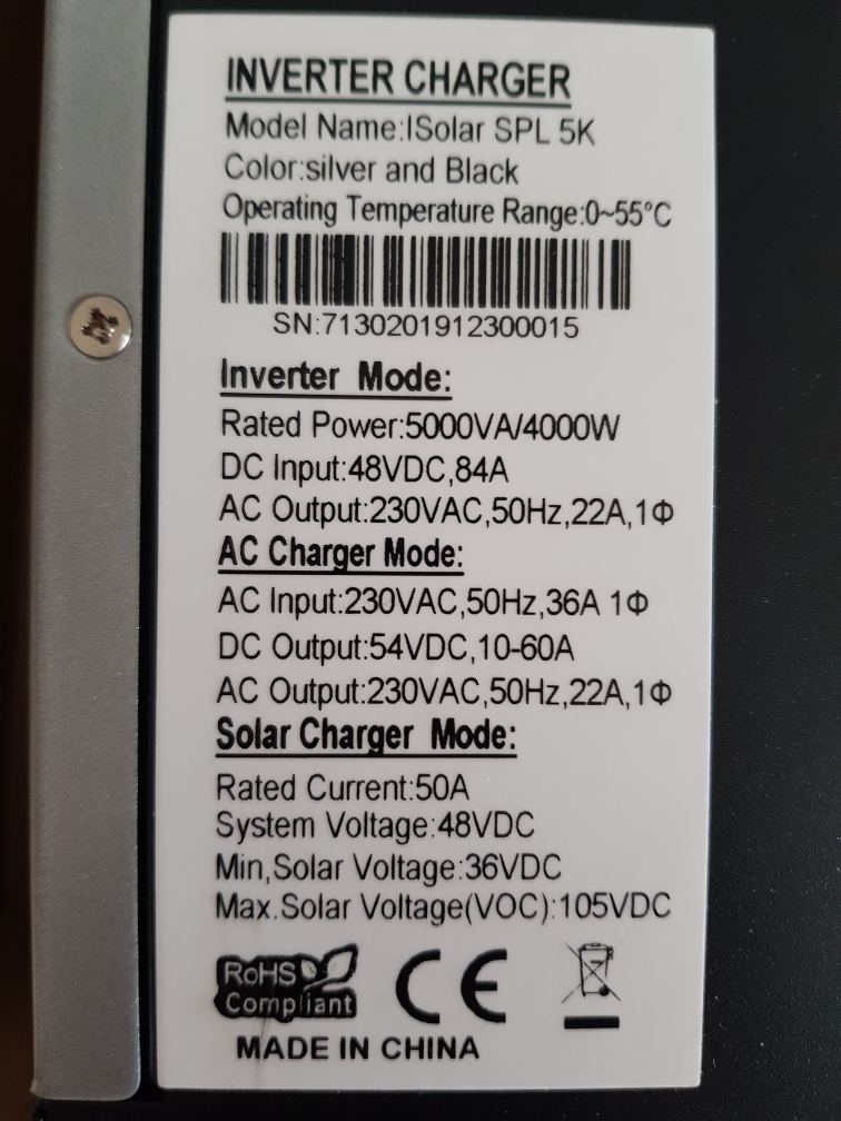 Koupil jsem si jej pro použití jako nabíječ/střídač ke stávající 4KW FVE bez baterií na vykrývání nočních odběrů.