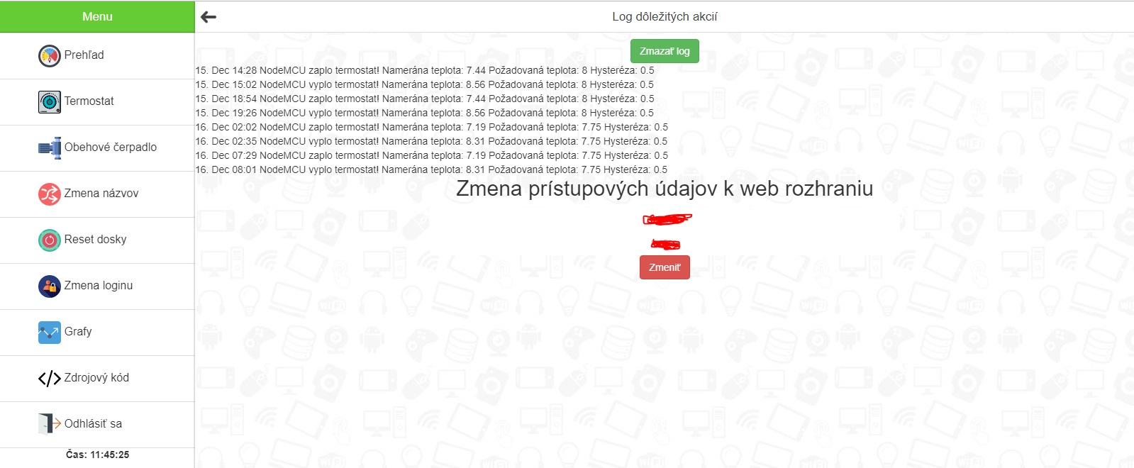 - Log zmien v systéme, kedy mikrokontróler prepol kúrenie, vypol, a pod.