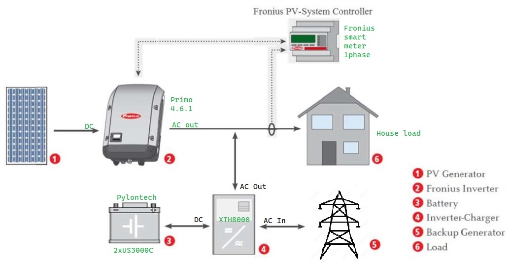 Myslím, že AC Coupling na AC-out by mal fungovať bez problémov, len pozor na death lock! Preto je lepšie do systému doplniť aj mppt regulátor.