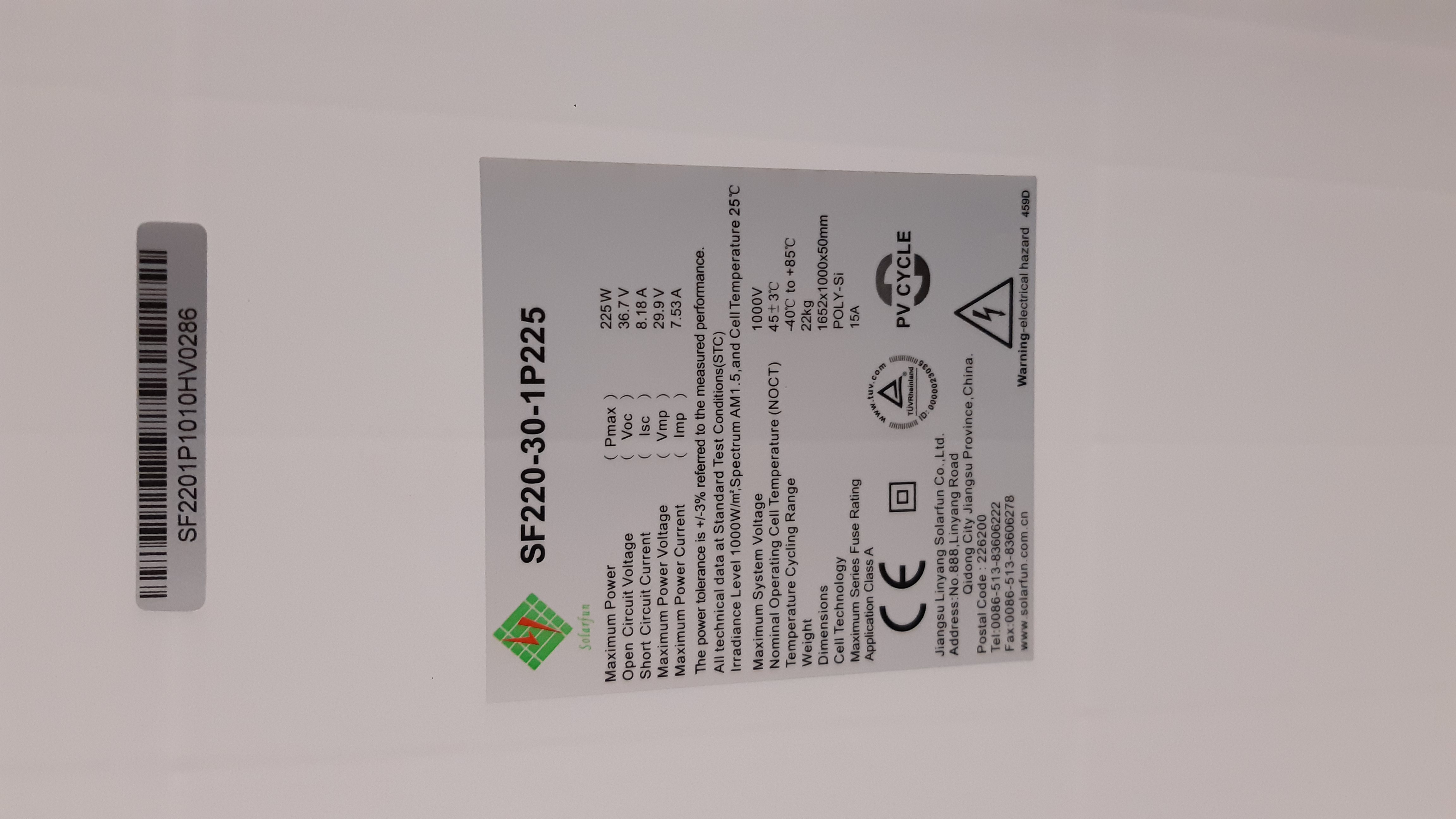 3 ks Solarfun SF220-30-1P225 - štítek níže, plus foto