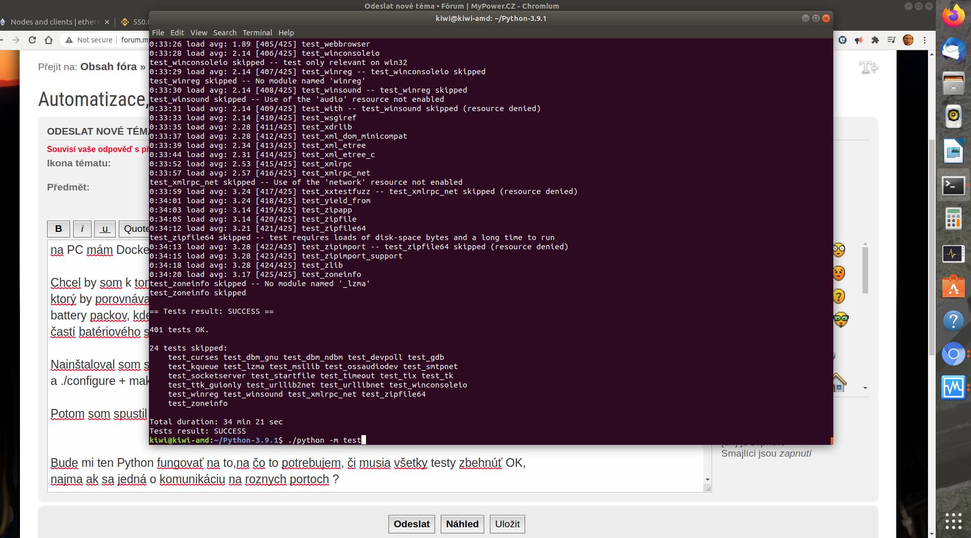 Potom som spustil ./python -m test a vyhodilo mi toto, ergo neprebehli všetky testy.