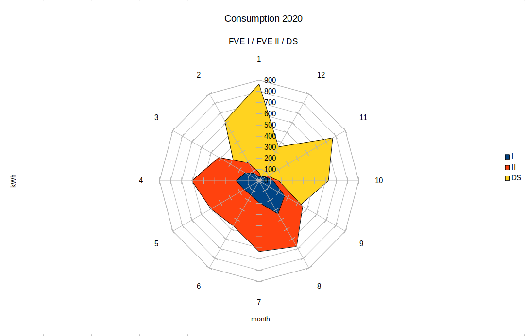 Je skládaný,jedná se o konečnou AC spotřebu z samostatného elměru za měničem a hodinama z DS.K 1.1.2020 bylo za měničem 15700kWh a nyní tam je 21673kWh , z DS jsem odebral do teď 307kWh.Jen jsem musel na papíru přepočítávat tu jednotlivou spotřebu na měsíce,podle záznamů skokových po MWh co mám.Duben mohl být taky s 0kWh ,ale odpálil jsem si měnič a čtyři dny jsem byl nucen jet z DS.Osádka domu celkem spolupracuje v dobách temna nechávají silovou spotřebu až když se energie nasbírá po několika dnech,pak teprve perou atd.Má žena mě letos mile překvapila,navrhla pořízení pečenky a používá ji místo trouby hodně