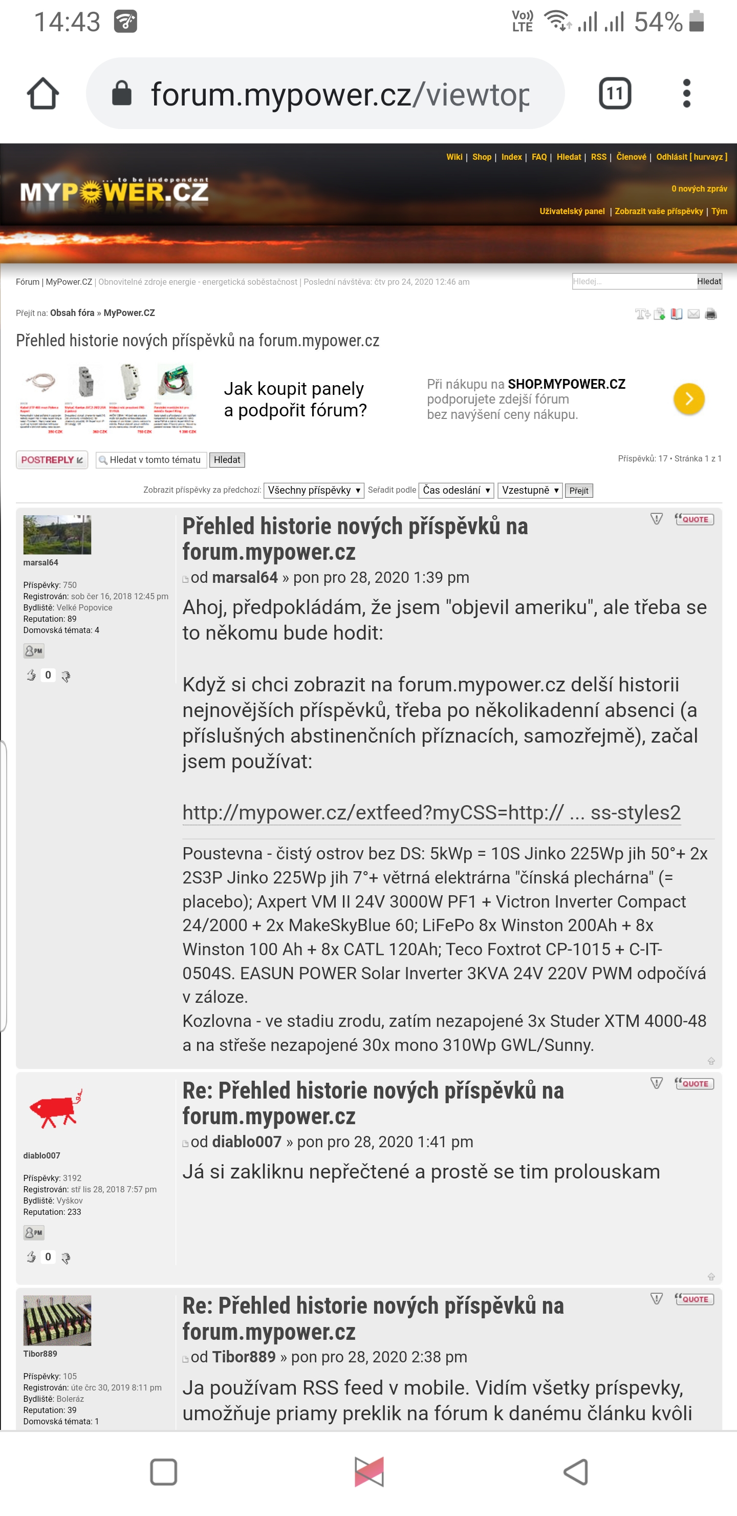 Re: Přehled historie nových příspěvků na forum.mypower.cz