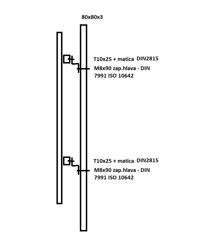 Vynechal bych ten z profil a dal do profilu matici a nerez šroub přes celý sloupek. Bude to chtít, aby ten šroub měl přesnou délku nebo hlavou šroubu do profilu a matici na jekl, tam to nebude tak háklivé, ale bude tam trčet šroub a soused by si o to mohl trhat šaty, když ti to půjde očumovat.