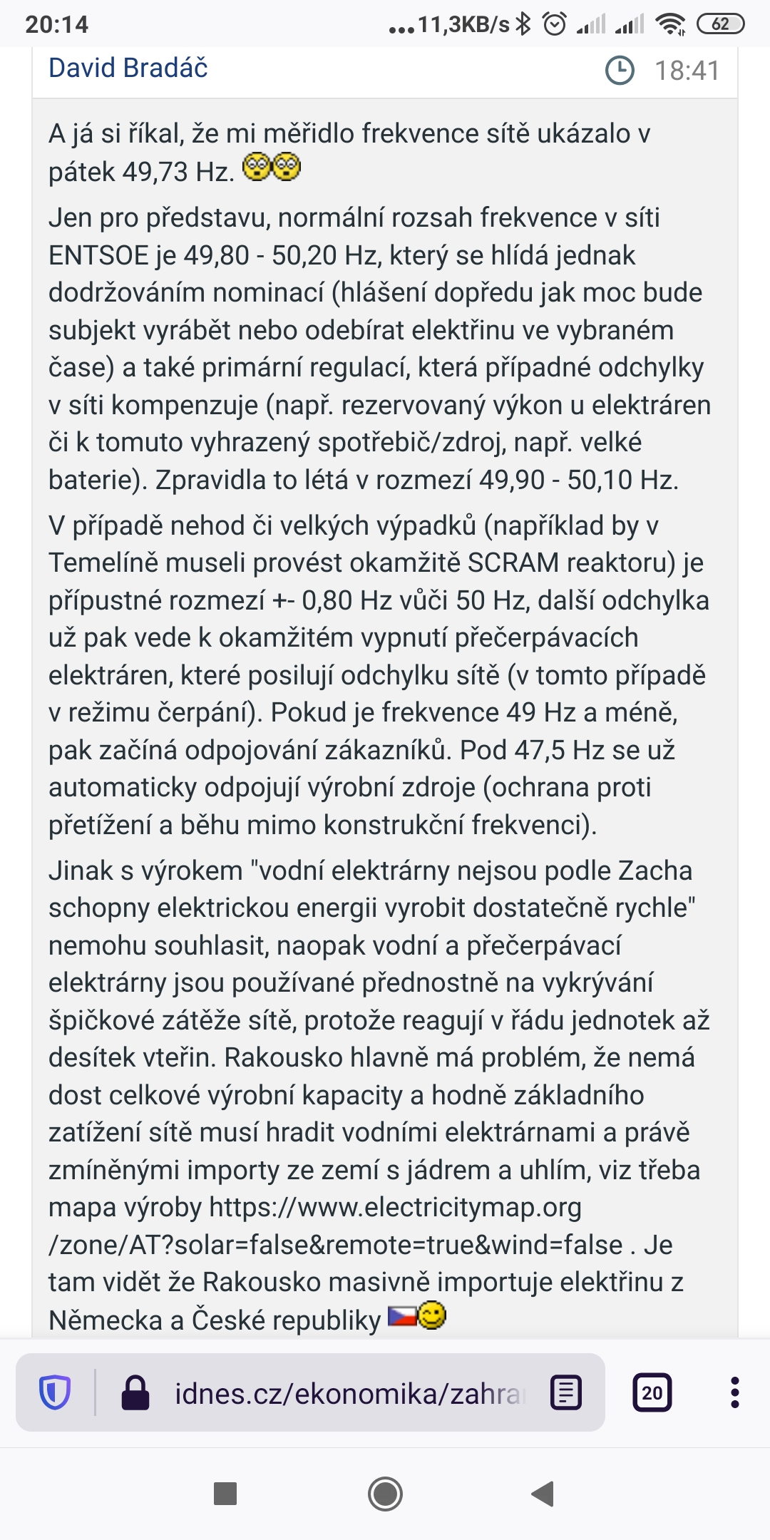na netu,už nevím kde k tomu vyšel článek pojednávající co je třeba dělat aby se to nešířilo a naopak stabilizovalo,jen o příčině se píše,nespecifikované kolísání někde v regionu rumunska a balkánu...a že budou stav analizovat.Předešlý článek,že to způsobilo počínání rakouska používáním alternativních zdrojů prý bylo vyloučeno....těžko se v tom vyznat,na to by bylo třeba vědět víc dat a ne vycházet jen z neúplných informací leckdy i tendečně upravených.Jinak regulace funguje na principu,čeho je málo tak se doplní,pokud moc tak se ubere,jen realizace je u většího celku trošku složitější...