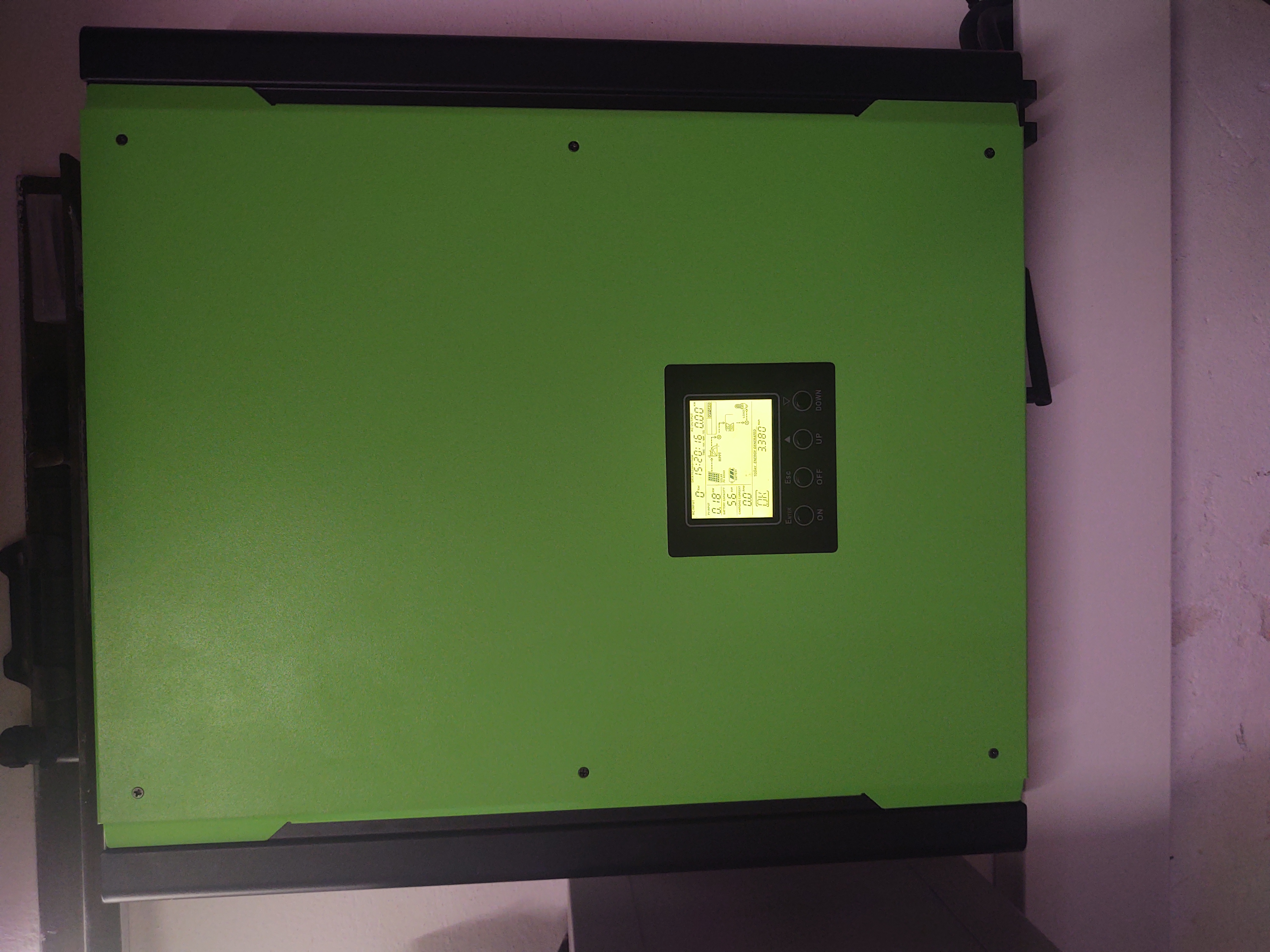 Zapojené sú zatial spotrebiče tak aby mi tá mini baterka 2,5kWh vydržala napájať tieto spotrebiče čo najdlhšie, teraz to vychádza tak do 2hej rána. Budú sa pridávať ešte panely na JV tak aby tam bolo aspoň 24 ks a nie 8. Keďže infiny vie nabíjať iba 25A tak zatiaľ nemá význam pridávať viac. Keď sa podarí pridám fotky.