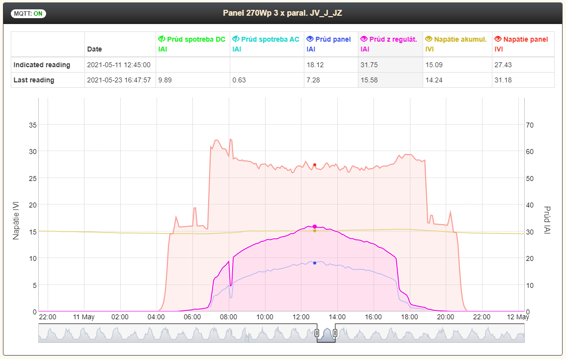 5,4 kWp JJZ 4deg,1,8kWp JV 24deg, do 13.8.2022 bylo 3,6 kWp, MPII 5k, Victron MPPT 250/85-TR, aku 9,45 kWh Lion 15S, BMS 200A, Smart Shunt 500A.
