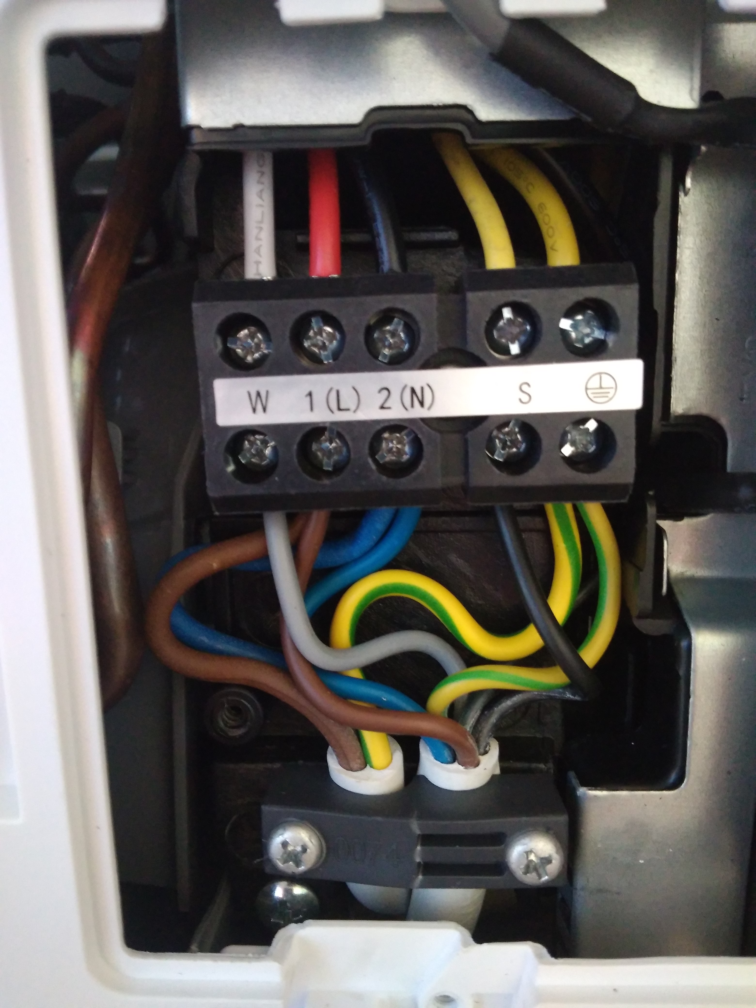 Vnitřní jednotka připojená na 230 V a propojená 5žil. kabelem s venkovní jednotkou