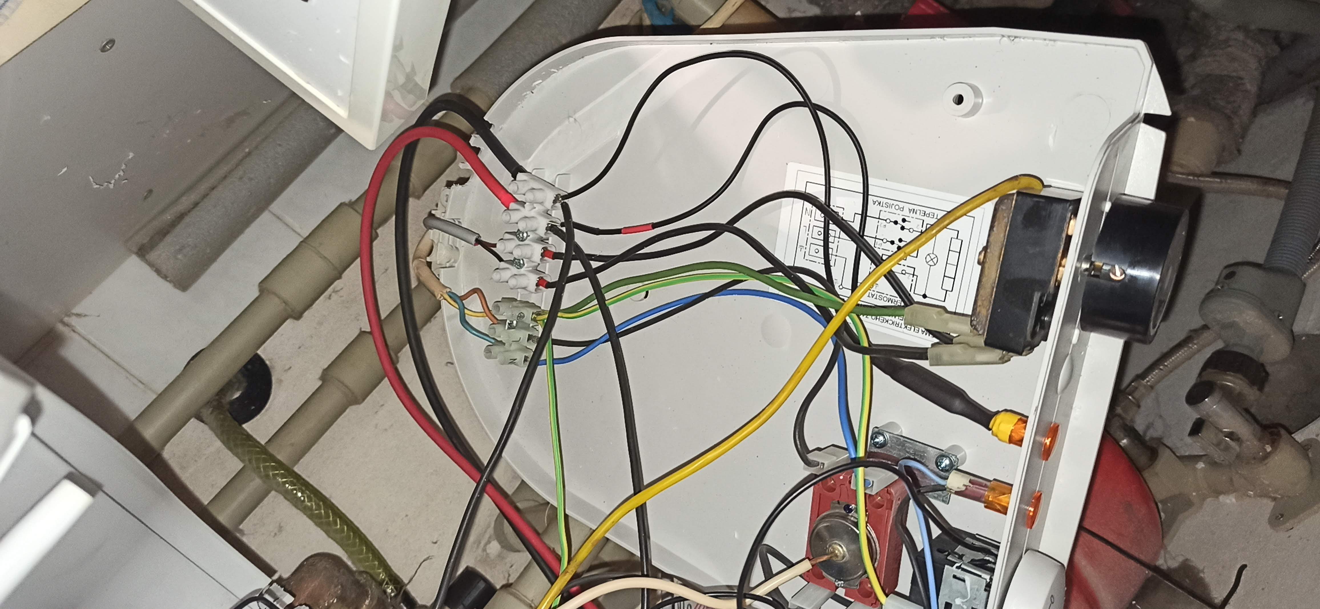 zvolil jsem jinou politiku, ty havarijní jako první abych jim zabezpečil nejvyšší místo v jímce , ale jak jsem psal, na stejný místo (úplně nahoru) do jímky se mi vešli bez problému jenom 3 ta čtvrtá se tou zvětšenou částí k těm zbývajícím třem prostě bezpečně bez možnosti poškození jedné z nich nevešla, takže je zhruba o 7cm níže, já zvolil tedy možnost, že obě havarijní a ta provozní co ovládá DC jsou v jímce nejvýše a ta provozní AC, která je nastavena na nižší teplotu je tedy o kousek níže , kontrolku jsem vyrobil z led 8mm s patřičným předřadným odporem a napájená je přímo z DC napětí spirály, spínání DC obvodu je zabezpečeno mini stykačem ABB řady B6