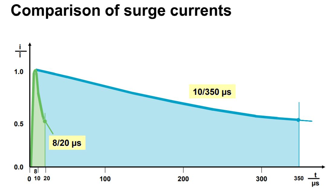 dýlkou impulsu. T1 10/350us, T2 5/20us. tj při delším impulsu ta T2 přestane existovat, tím pádem neudrží Up...