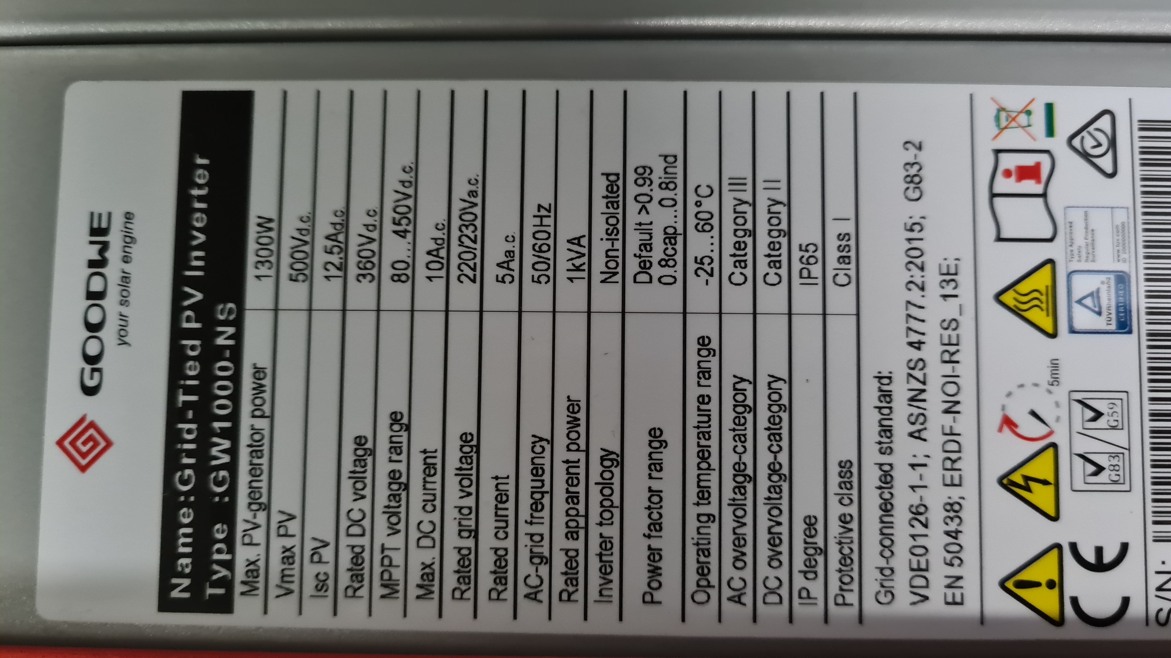 Re: síťový střídač GOODWE GW1000-NS