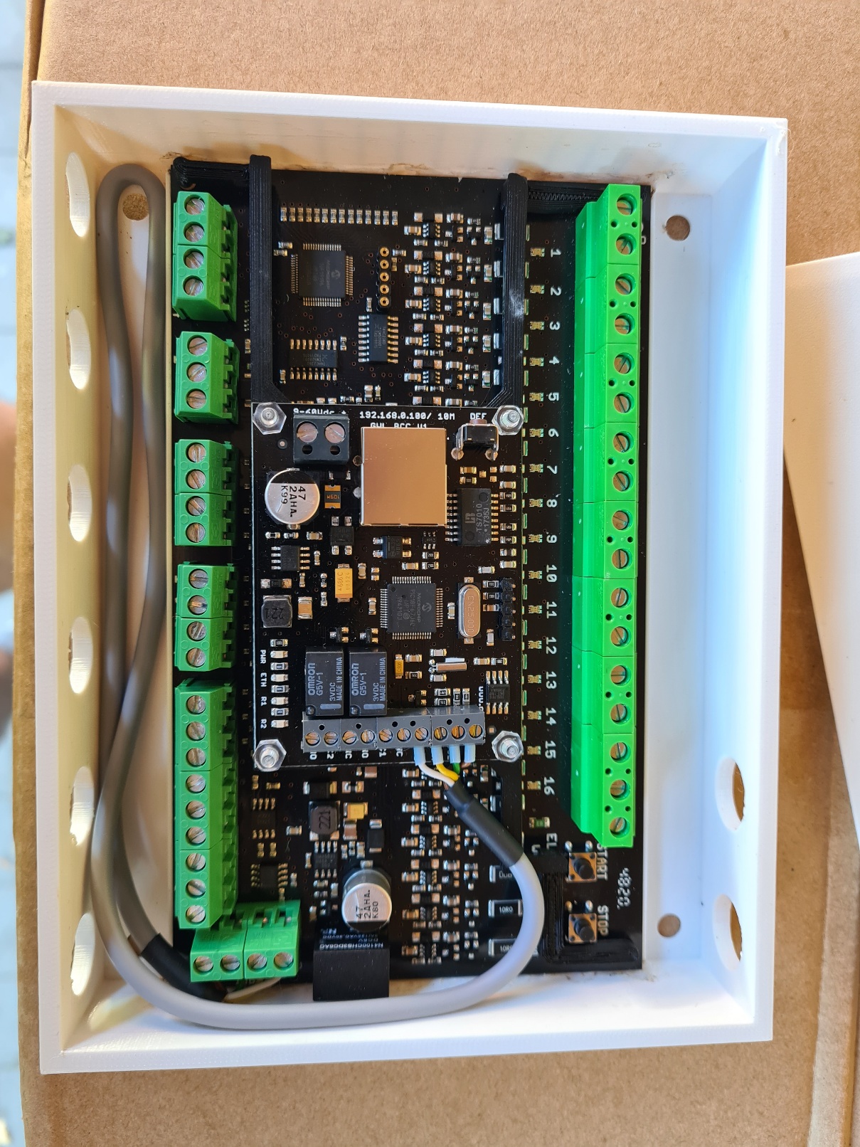 Vše zapojeno vykabelován rozvaděč, zapojena ovládačka. Vyrážecí cívky fungují, dělá to pěknej rámus. Ali se někde fláká s tlačítkem. Vyskladnili poslali, ale dopravce to nemá :=(. Doufám, že to nebude nějaká levá. Posílali to z česka a mělo to být tady za 4 dny. Doufám že to nemusí nejdřív přijít z číny...