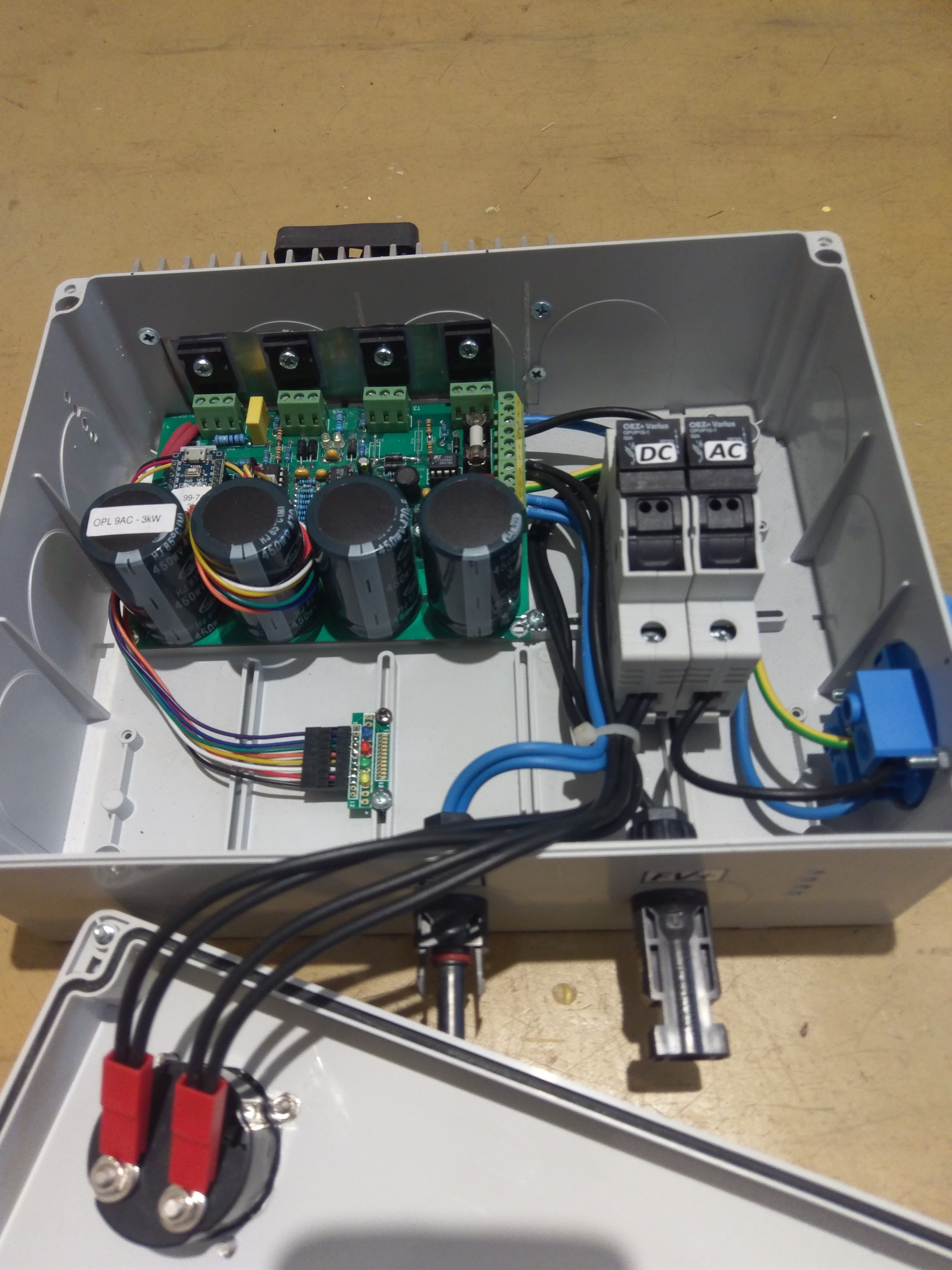ne, ale aspoň se snažím dodržet normy. Tj chladič mám vevnitř, nemám kovový šroubky procházející krz kryt. Dyť od napětí panelů tě v tomhle případě dělí jenom izolační podložky pod tranzistorama. To určitě na 4kV nestačí. Navíc když ten mosfet vybuchne, tak se kolikrát přivaří k chladiči. O přepěťovku tady není ani pokus, i když MC4 konektory navádějí, že to má být připojeno přímo k panelům, o tom, k čemu navádí zásuvka na výstupu nemluvě...