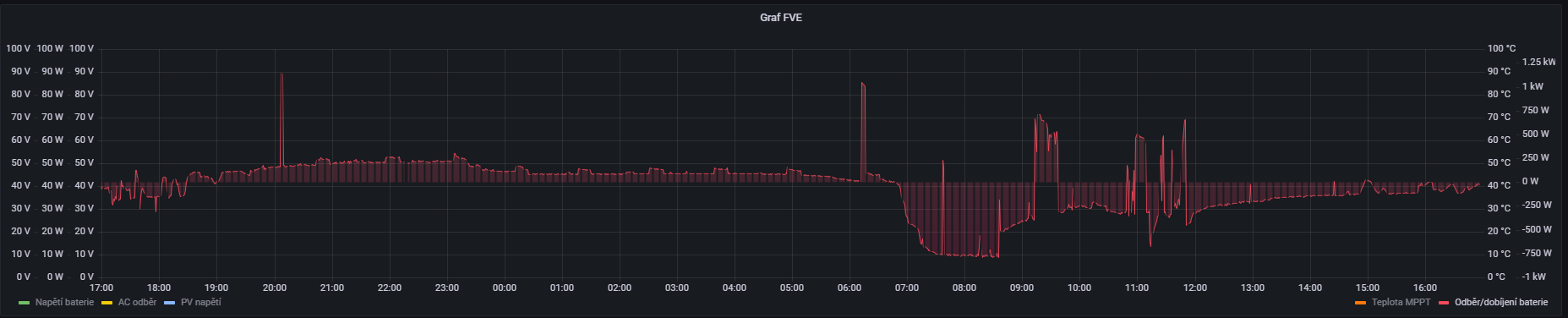 U mě je to dost podobné. Navíc když si zátěž pocucá chvíli baterku vrátí se do absorbce. Přidávám grafy. Mám klon experta green cell 3kw