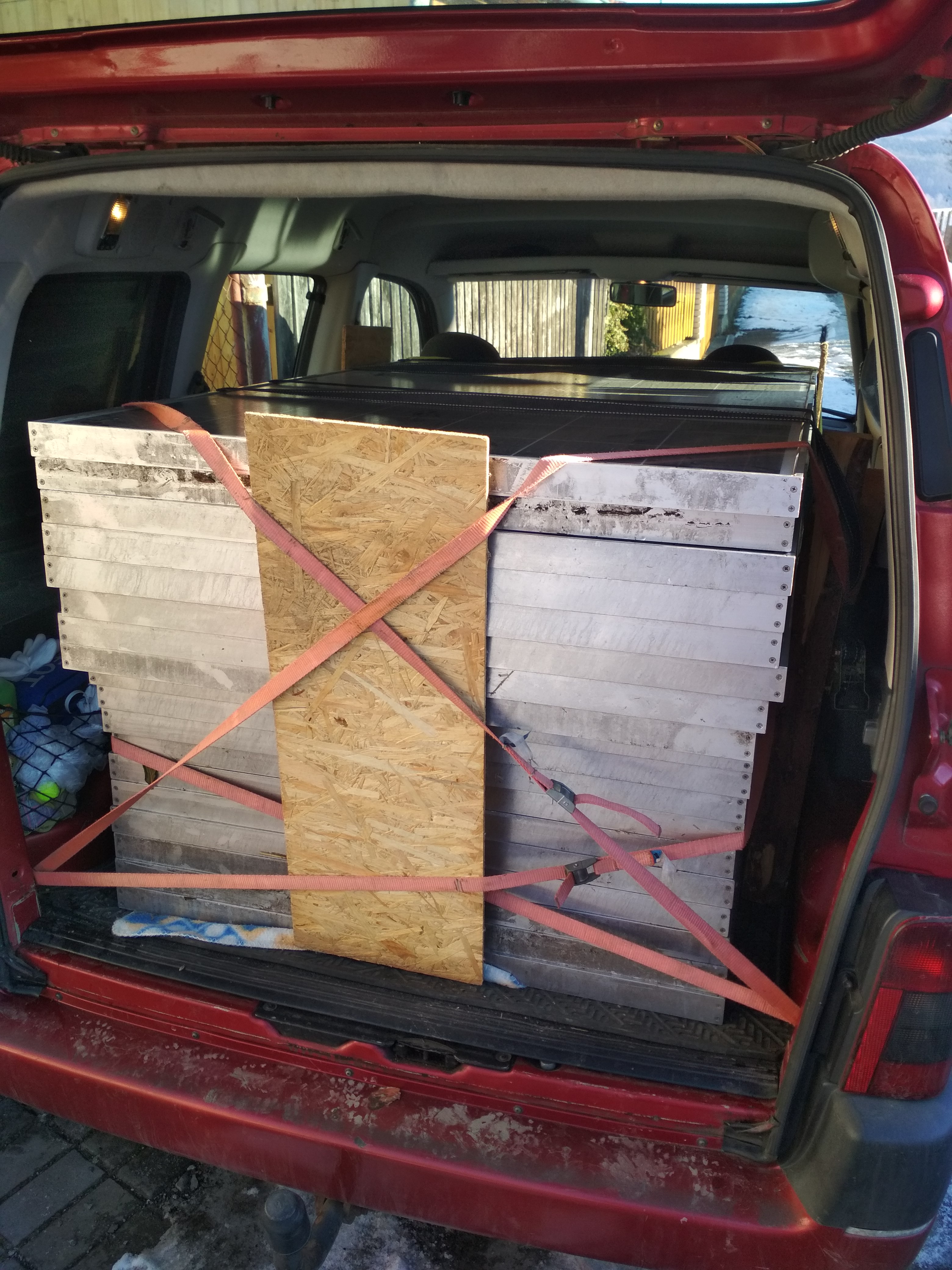 18ks je doma. Dva mají popraskané články. Využil jsem sluníčka a pokusil jsem se o změření napětí naprázdno a proudu do zkratu. Kupodivu i ty popraskané fungují. Půjdou na garáž místo krytiny.