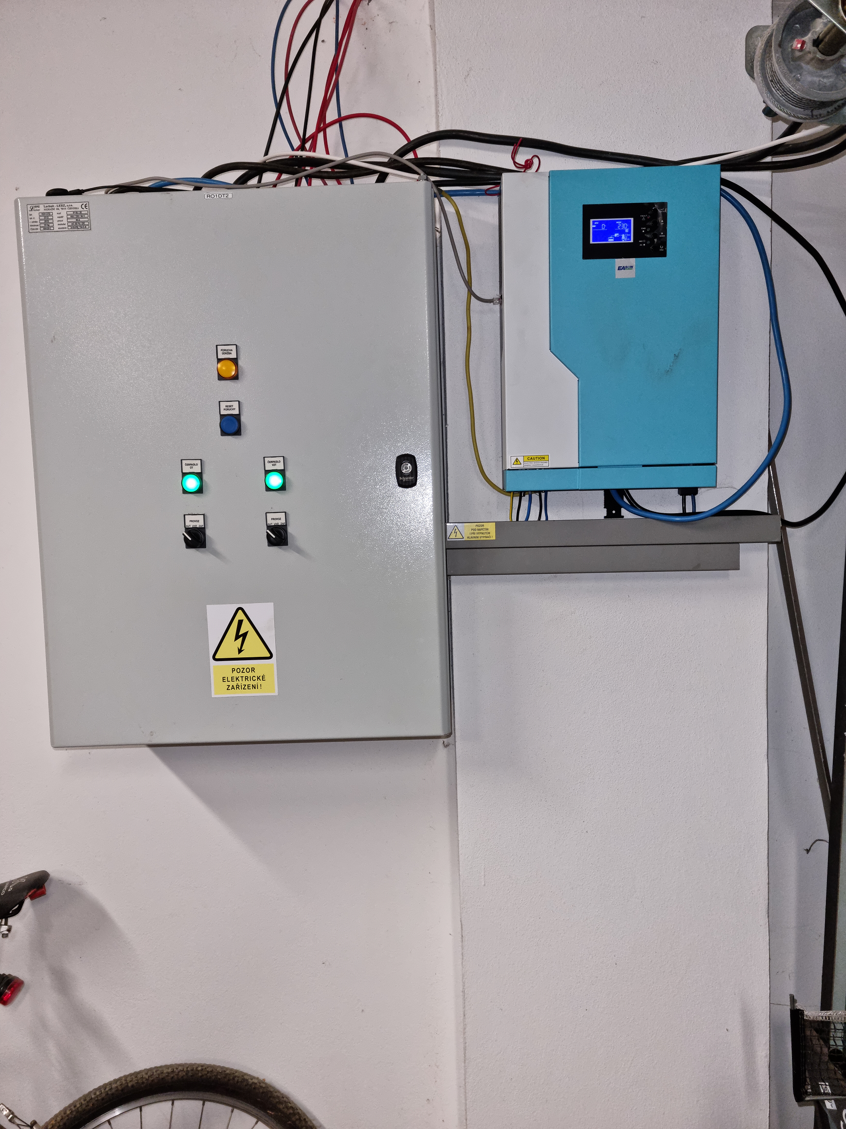 Phoenix 5 kVA + MP 24/5000 (můj byt + wifi/kamery/atd. + máti byt)