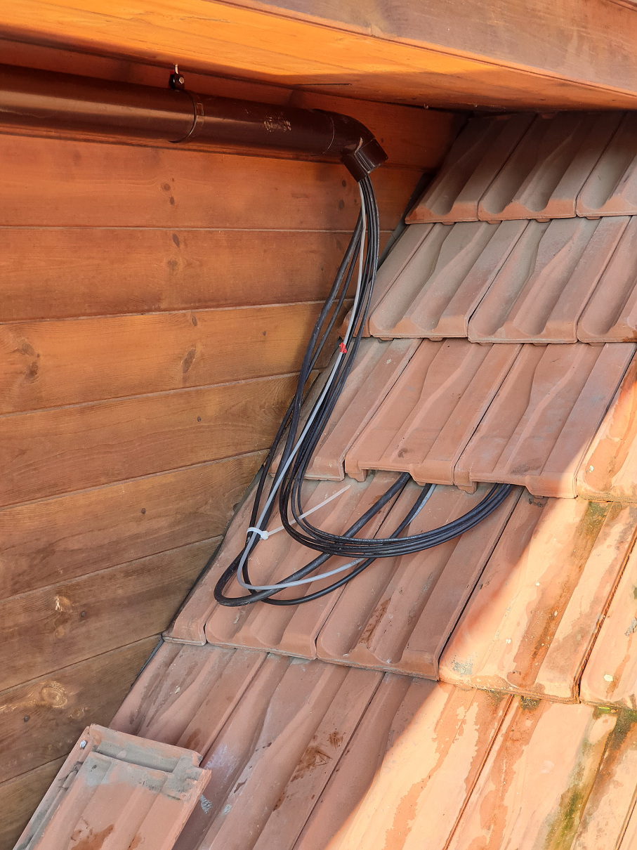 Ty svodiče bez připojenýho uzemnění jsou k ničemu... Ty větrací tašky používám taky, ale dávám ty solarkabely v tomhle místě raděj ještě do UV odolnejch husích krků. Jeden nikdy neví, co se může odehrát.