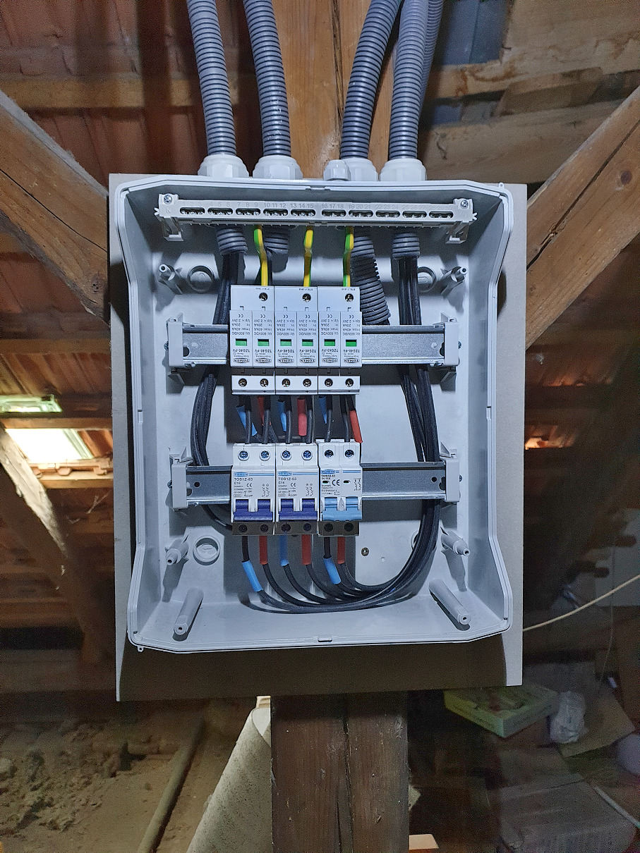 To já se snažím mít všechno v jedné bedně na případný druhý měnič je místa dost.Pokud to trochu učešu a vyrobím krycí plech do rozvaděče + nějakou lištu,tak by to mohlo projít i případnou revizí. Bedna,lišty,ovládací prvky a spousta dalšího materiálu je recyklace za 1000kč..Hotový ještě nejsem.Nejdůležítější je počet panelů na střeše, ne jak vypadá rozvaděč:)))