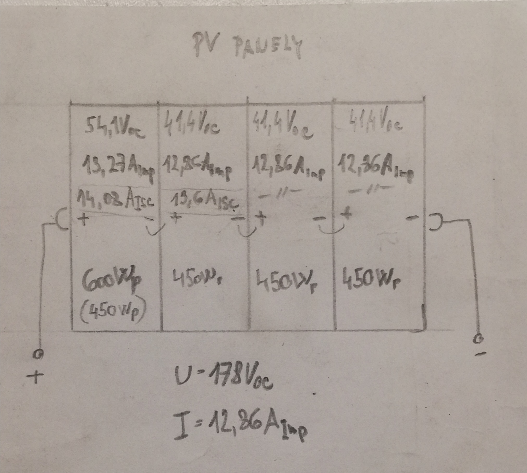 3x450wp + 1x600wp paralelně. S přibližnými parametry.