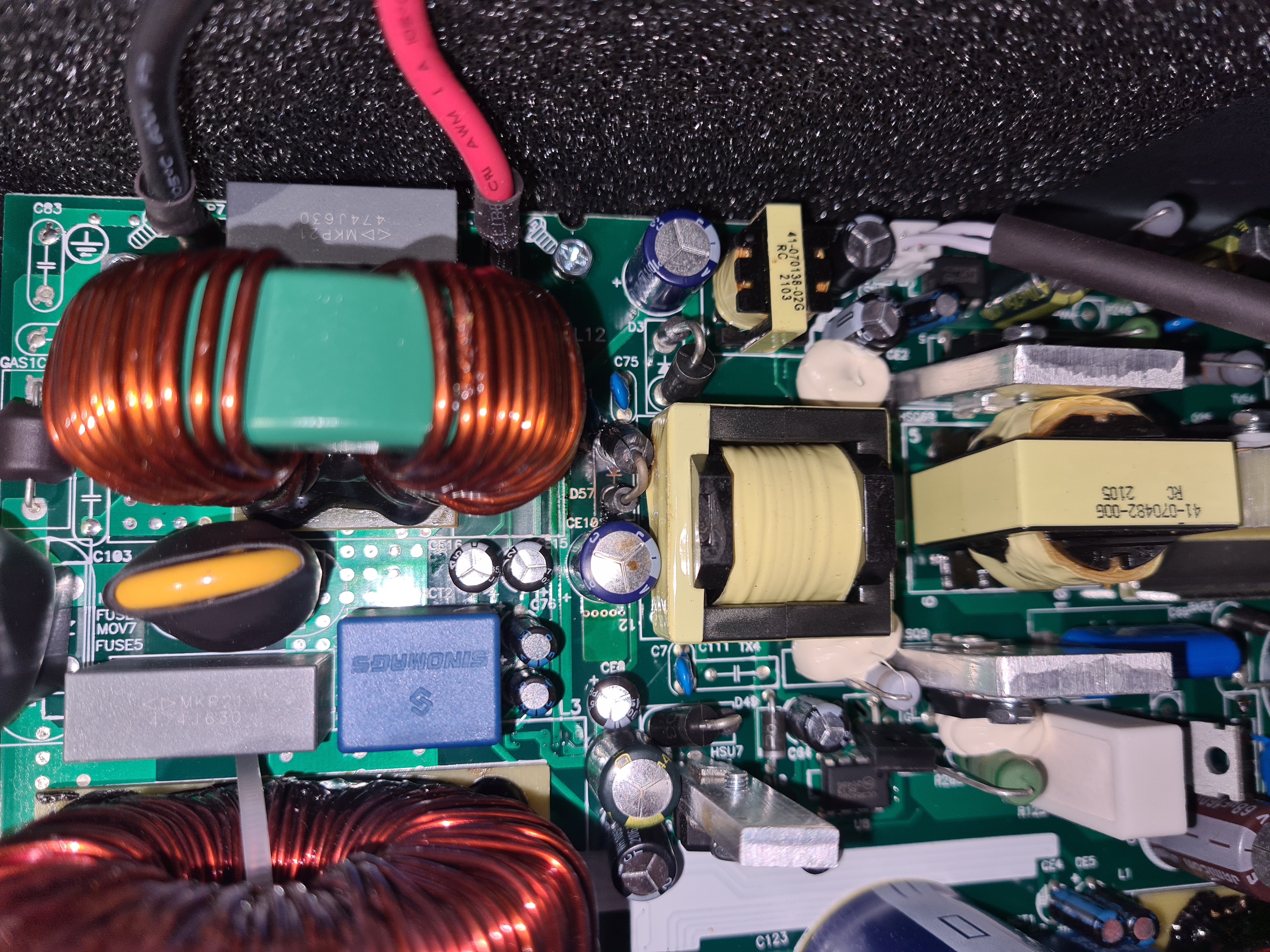 Na obrázku je shořelá dioda a několik nafouklech kondíků na sekudáru asi pomocného zdroje ....