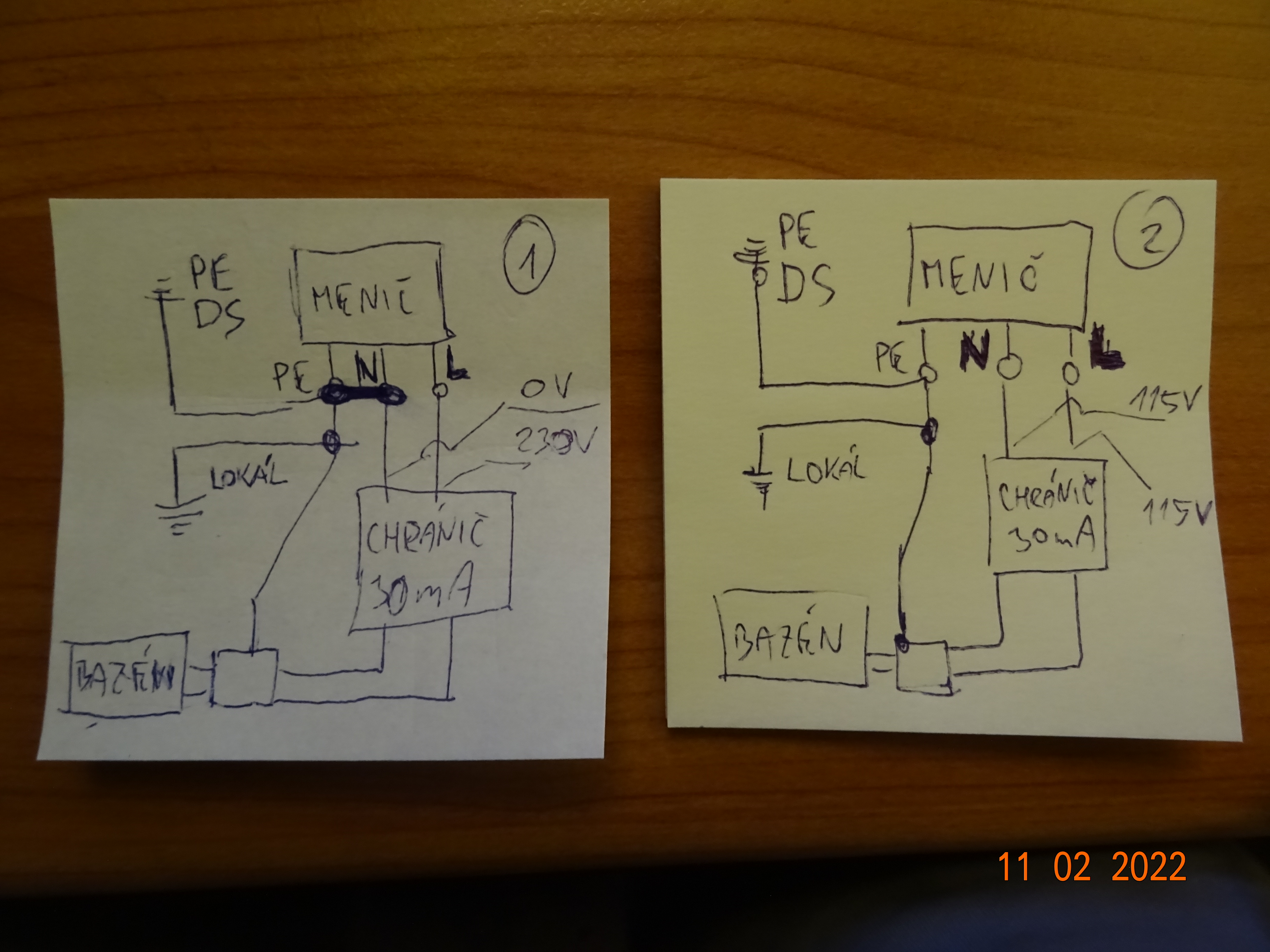 Mne ide o o zásadný rozdiel medzi dvoma jednoduchými schémami, v rýchlosti som ich nakreslil, v jednej je proti zemi 115V, v druhej 230V a v oboch je podľa mňa plne funkčný chránič. poprosím Vás o vyjadrenie sa ku schéme č. 2, kde je napätie oboch pracovných vodičov 115V proti zemi voči klasickému zapojeniu č. 1., kde je napätie fázi 230V proti zemi.
