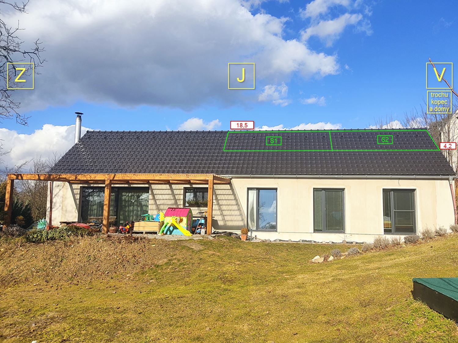 Dum je situovany presne na jih s uhlem strechy 39stupnu.