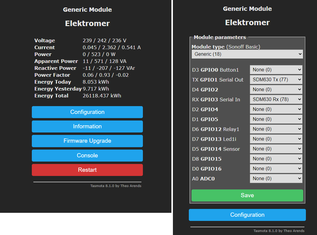 Pripojene to je pres wifi. V jednoduchosti je sila a tasmota umi to co se od toho ocekava a primo podporu SDM630 ma.
