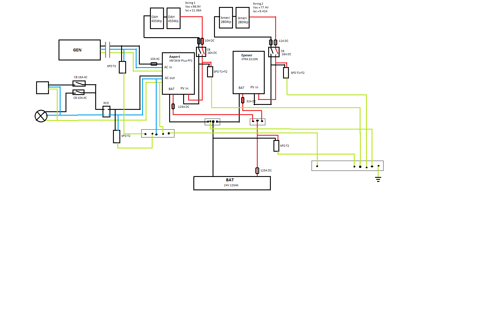Po čase finalizujem našu malú FVE a spravil som si návrh rozvodov a istenia.