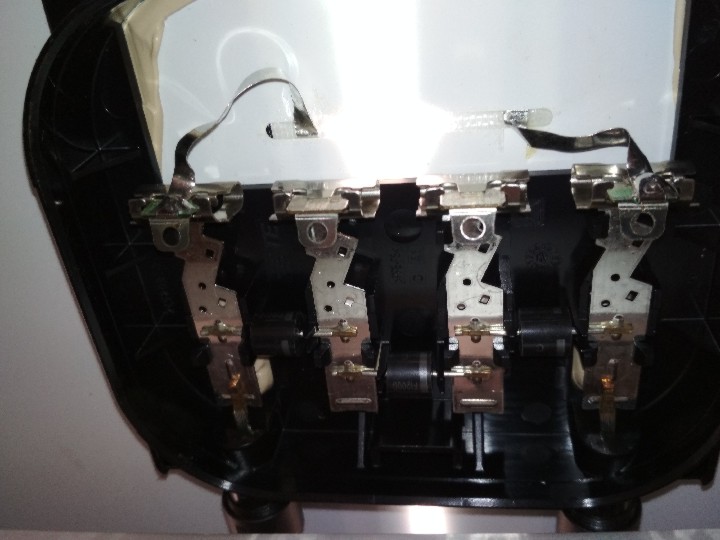 @ fugas / kodl69 - krabicu som otvoril už včera, tu je fotka neviem prečo sú tam tri diódy, pretože pokiaľ vidím, tak ku vnútorným svorkám nie je pripojené nič, napätie merám len na krajných, s ktorých idú káble von. možno by stála za pokus oprava ktorú popisuješ, síce s neistým výsledkom, ale panel je aj tak na odpis.