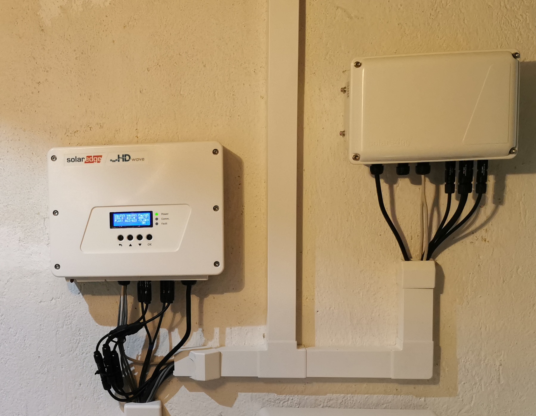 SolarEdge 5000 HD, panely AEG JV a JZ, AEG SV, SolarEdge Optimizer P300 a P401, PLC Unipi Patron M527, elektroměry EM 340 a EM111 Modbus