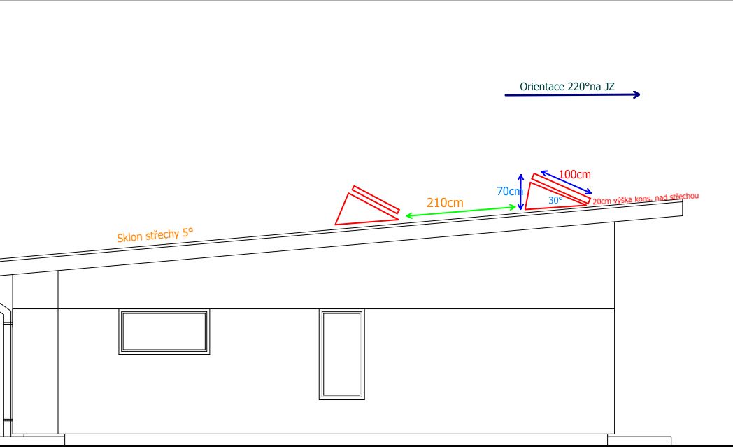 Nad položením na plocho jsem taky uvažoval, i jsem to počítal, ale jak je to skloněné 5°na SSV, tak ta ztráta je tam děsná. Muselo by se to přizvednout aspoň na 0°a pak už se zase dostávám na špatný poměr cena/výkon.