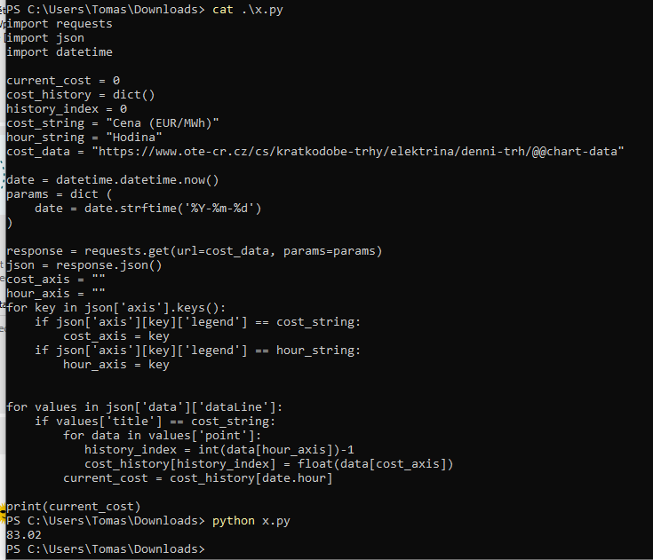 Něco podobného také připravuji navíc v kombinaci s predikcí výroby z forecast.solar, zatím mám serverovou část, kdy stahuju data z OTE a forecast.solar a řízení měniče bude přes Loxone, na tom aktuálně pracuji. Jako měnič mám Victron Multiplus II, takže pro jeho řízení budu využívat ESS mód 2.