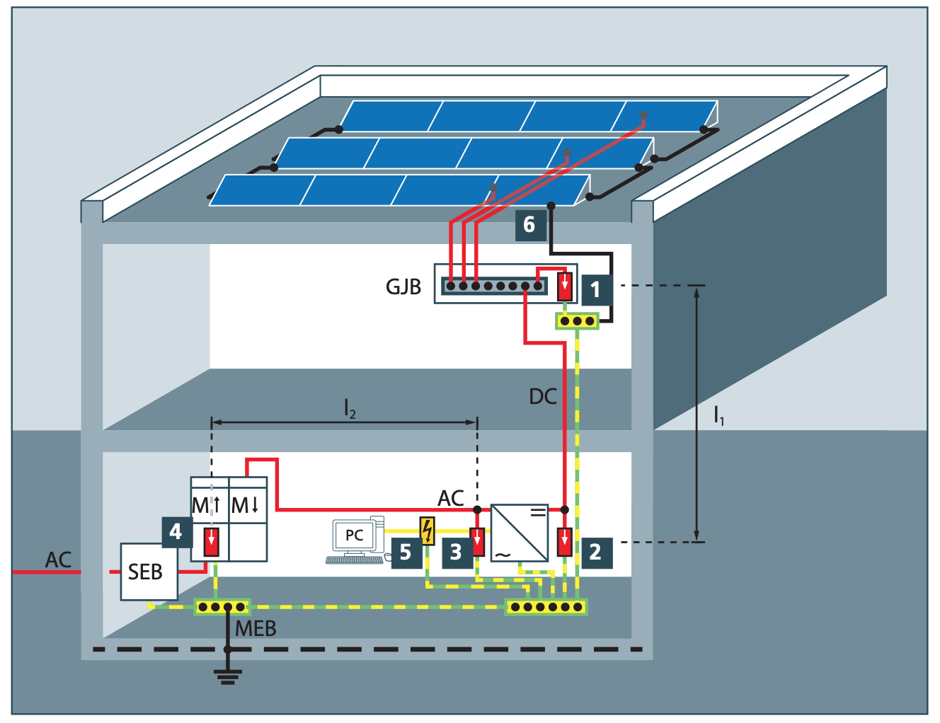V podstatě mám na mysli zapojení viz přiložené schema, jen s tím, že by GJB byl ještě na střeše. Co nevím: